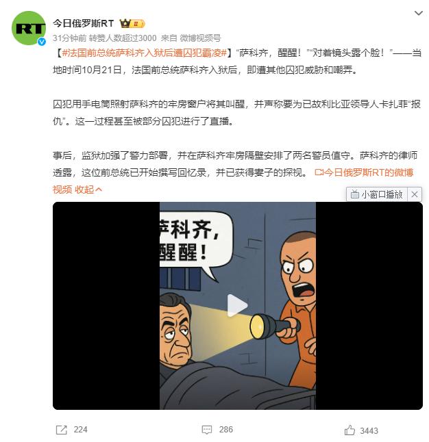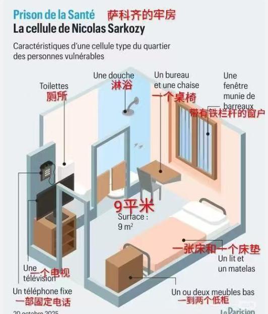 太戏剧了,电影都不敢这么演! 法国前总统萨科齐被入狱后被霸凌了,还被直播了!法国的监狱居然这么松弛吗? 当地时间10月21日,法国前总统萨科齐在巴黎一所监狱入狱服刑。 但是却发生了戏剧的一幕,有囚犯用手电筒照射萨科齐的牢房将其叫醒,还说要为卡扎菲报仇。 更离谱的是,这一段还被部分囚犯进行了直播。 当地时间10月22日,法国内政部证实,给萨科齐配备两名安保人员,主要是驻守在他的隔壁牢房,给他提供保护。 说实话,谁能想到会发生这种事?本来入狱是一件很严肃的事,结果 却闹出了这么一场堪称荒诞的“大戏”。 萨科齐作为曾经的法国总统,落得如此境地本就令人唏嘘,如今在监狱里又遭遇这般奇葩之事,实在是让人意想不到。 把监狱这样一个本应严肃、保密的场所变成了“秀场”,这无疑是对法律和规则的公然挑衅。 而且说实话,法国监狱查出来手机还真不是什么新鲜事了,更何况监狱环境也不咋地,现在连前总统进去都受到这种待遇,肯定又要引发一系列关于“司法平等”的讨论了。 萨科齐其实已经申请了假释,但现在的情况是,他至少要在监狱里待上十天半个月才能出去。 说实话,这几天法国的事情听多了,又是卢浮宫被盗,又是前总统在监狱被直播羞辱的,多少会让人觉得法国国际影响力在下降了。 你怎么看待这件事?