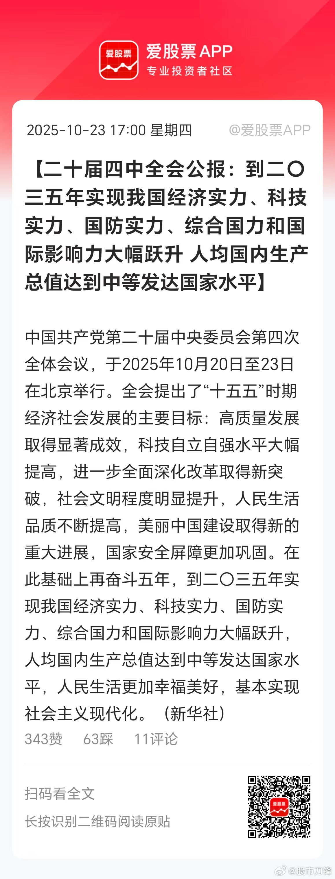 二十届四中全会公报来了,爱股君看了下: