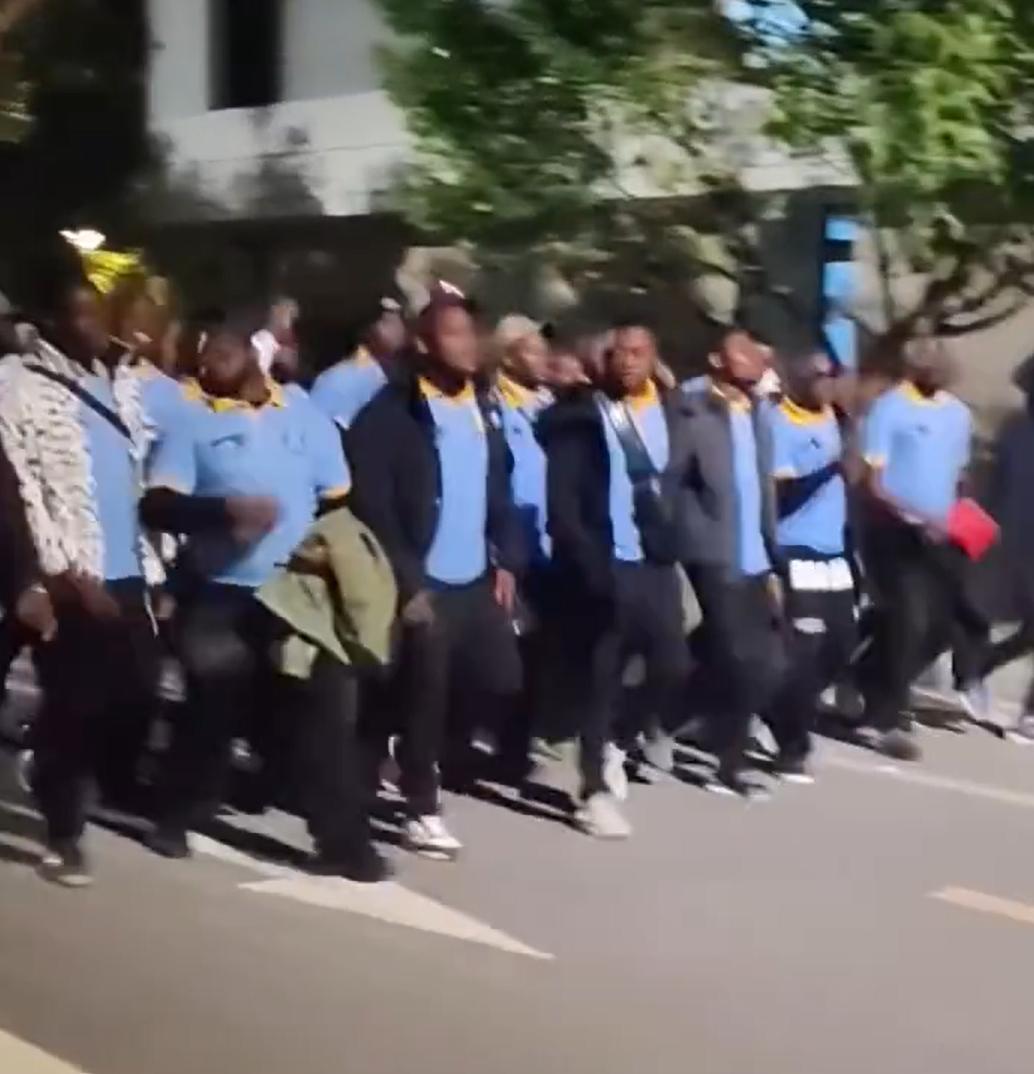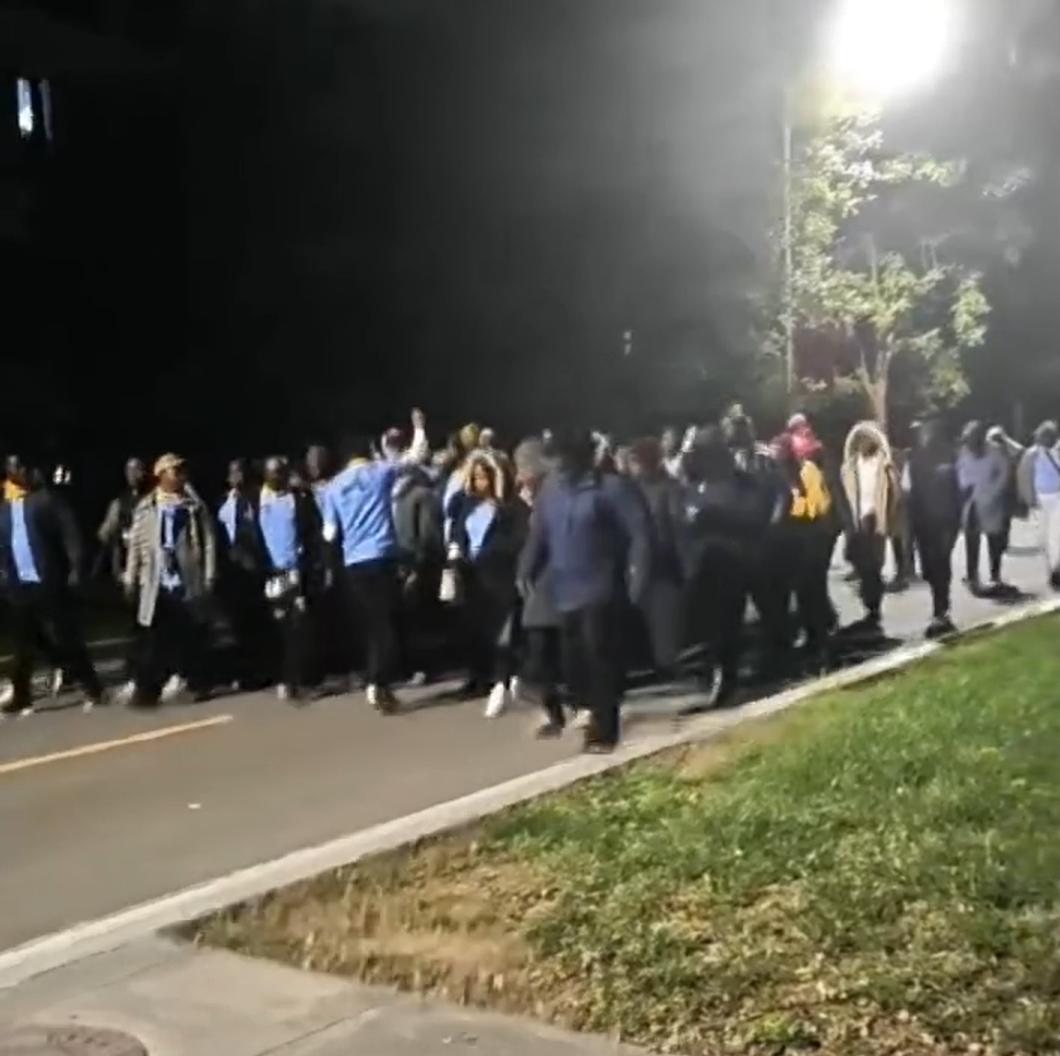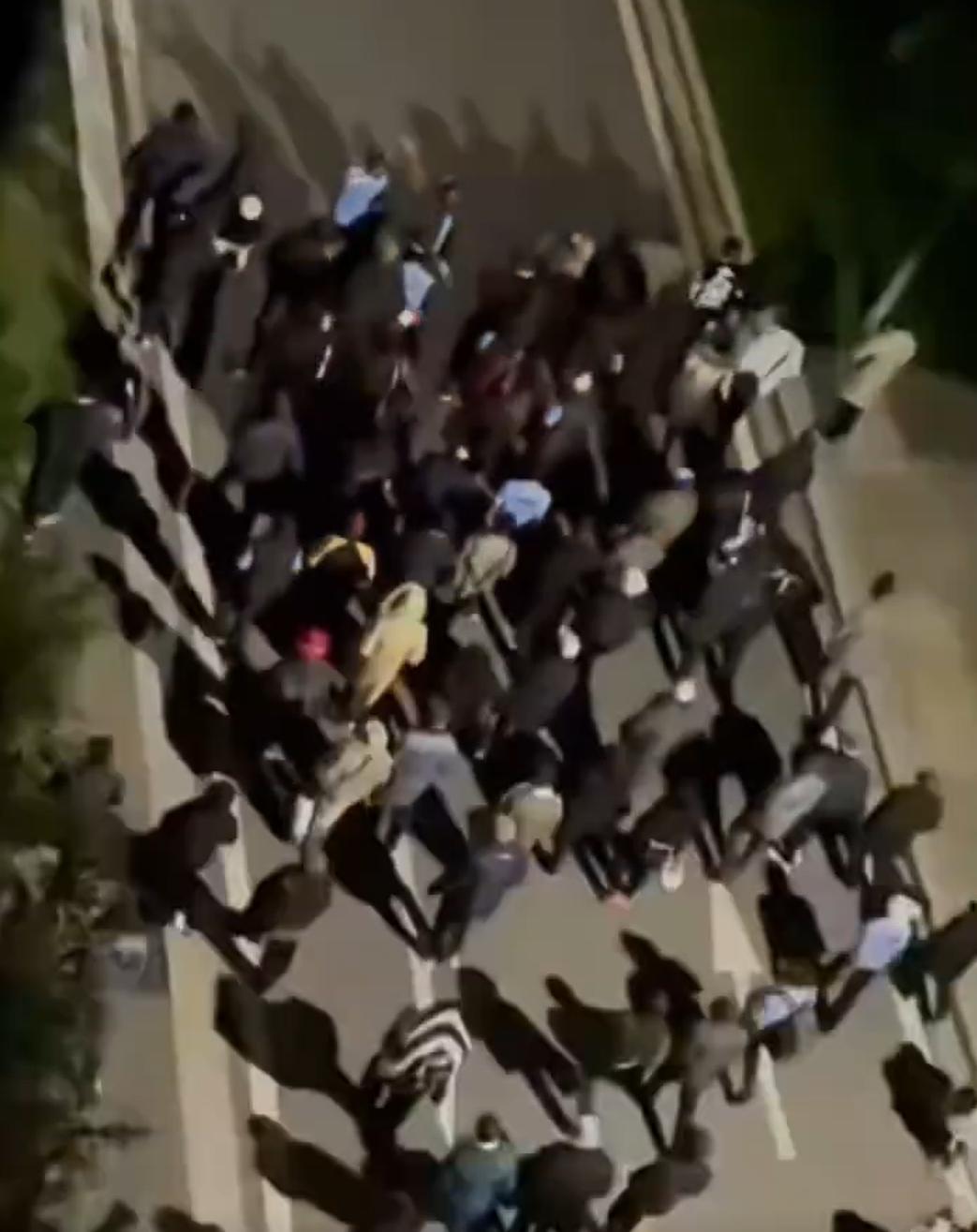 大批黑人,大晚上的,在天津某学院内,大喊大叫的游荡。 好像是在唱歌,但是听不懂。 目次至少有60-70人,有男有女,大部分人里面穿着蓝色半袖,外面的衣服倒是不统一,不过基本都是深颜色。 搞不懂他们是在干什么。 另外,注意图七,很多中国的女孩子,围着黑人合影,感觉很是奇怪。