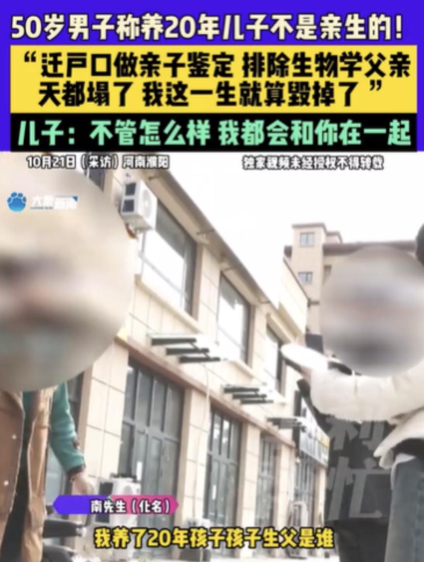 河南濮阳,男子与前妻离婚,前妻带走女儿,留下儿子给男子。 男子抚养儿子20年,但在迁户口时做亲子鉴定,发现儿子并非亲生。他质问前妻,前妻坚持说孩子是他的。 南先生(化名)看到鉴定结果时,内心无比痛苦。养了20年的儿子竟不是亲生的,令他难以接受。 南先生和前妻于2015年离婚,婚姻已破裂。前妻曾因煤气中毒打电话给他求助,但他未接,前妻因此觉得他不在乎她,决定离婚。 离婚后,前妻考虑到带儿子再婚困难,只带走了女儿,把儿子留给南先生。从那时起,南先生和儿子相依为命,起早贪黑工作,尽力抚养儿子。 南先生一直认为,作为父亲,照顾好孩子,让孩子成才比什么都重要。他努力工作,注重儿子的教育,直到做亲子鉴定时才发现儿子并非亲生。南先生从未怀疑过,尽管儿子长得不像他。 幸好,儿子安慰他说:“无论如何,我都会和你在一起。”这句话让南先生感到一些安慰。 南先生一直认为,女儿像自己,所以是亲生的,而儿子虽像前妻家人,他从未怀疑过。 现在这种情况,你们觉得南先生应该怎么做?是接受现实还是将妻子告上法庭?