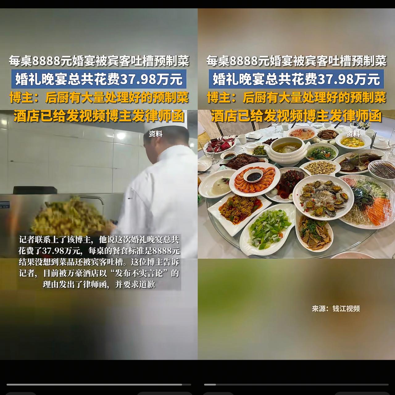 贾国龙没想到͏ 罗永浩没想到 西贝预制菜风波刚过去,又被 上海万豪酒店的婚宴搅翻了天! 花37万办婚礼,8888一桌的菜,宾客吐槽难吃不说,后厨全是包装好的预制菜,连虾都是冷冻的,白切鸡还带血水 。更讽刺的是,酒店先说“100%没有预制菜”,被曝光后立马发律师函逼删视频,这操作和当初西贝硬刚如出一辙! 真不是大家敌视预制菜,而是花着现做菜的钱,吃着低成本预制菜,知情权被摁在地上摩擦。西贝风波已经让行业看清,透明才是出路,现在还敢捂盖子,纯属自寻死路! 消费者怒的从来不是预制菜本身,而是“高价低配”的欺骗。与其花心思发律师函,不如好好标注菜品信息! 你说,这种藏着掖着的商家,真的该被原谅吗?