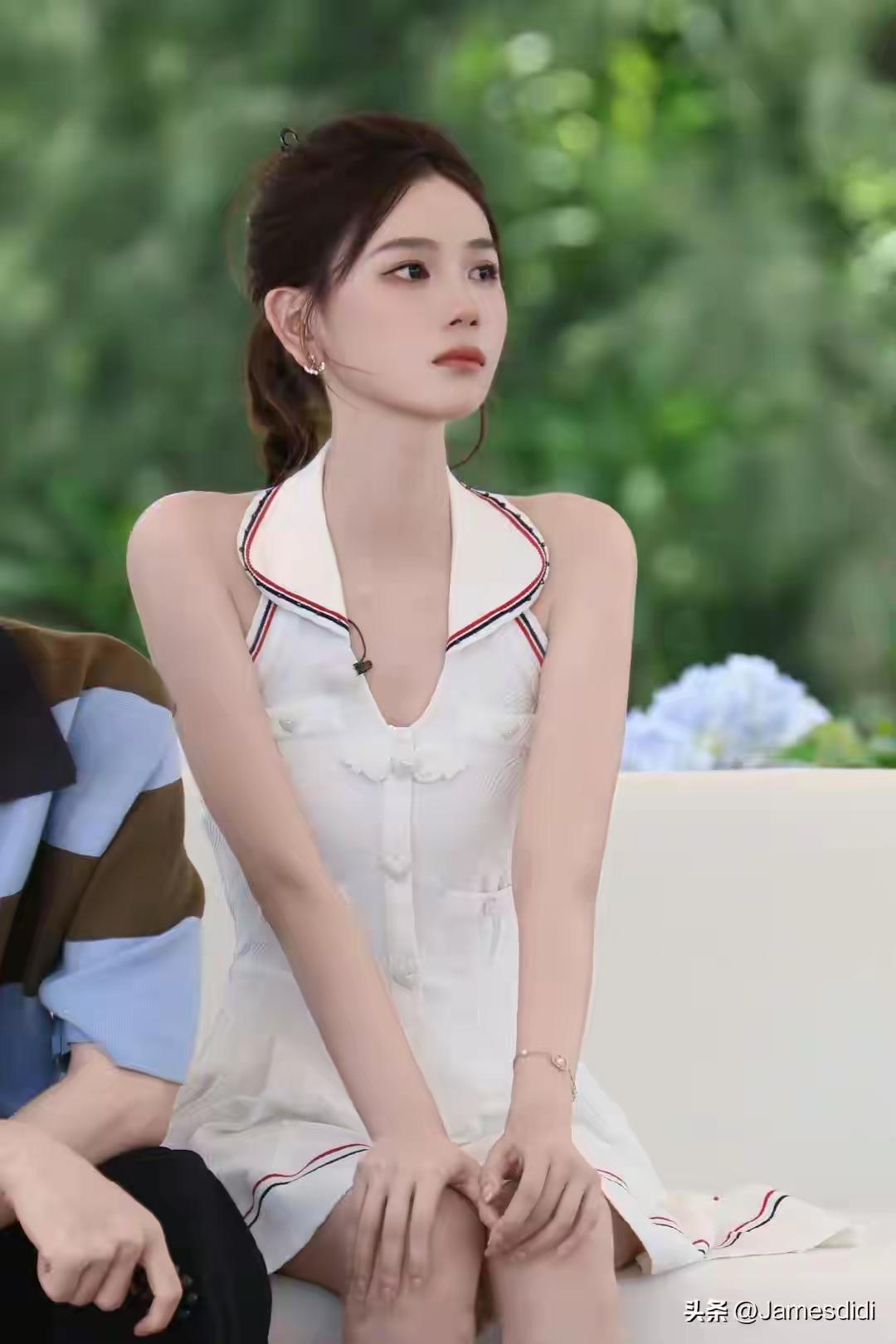 低胸粉墨裙+发簪!美女这造型,把纯欲风焊在审美上