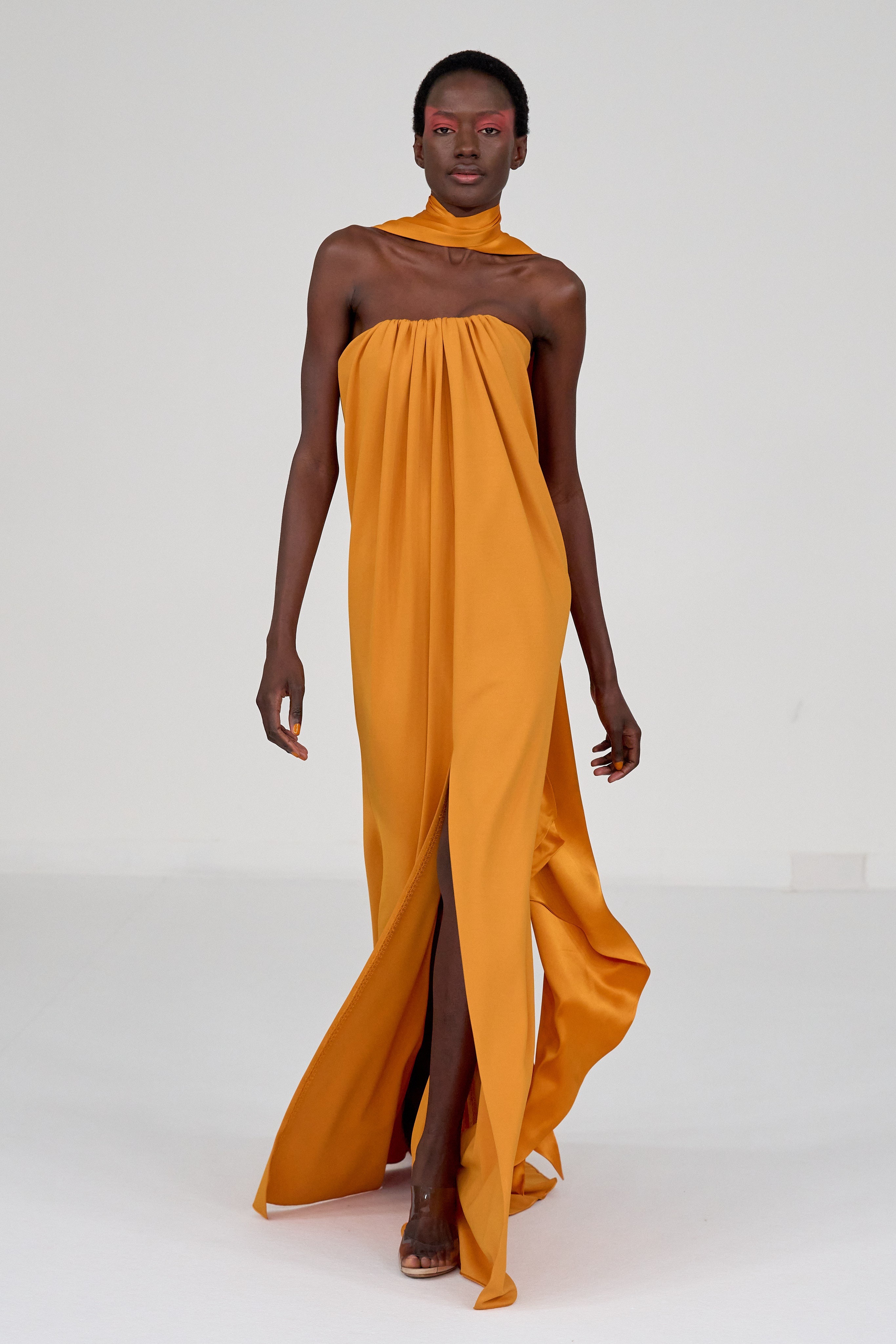 女士今晚第二套造型 ,带来一身 Alexis Mabille 2023 春夏高级定制系列抹胸飘带裙装的演绎 ,驾驭的很出彩哦 ,简约色调之下的美丽 ~ 🧡