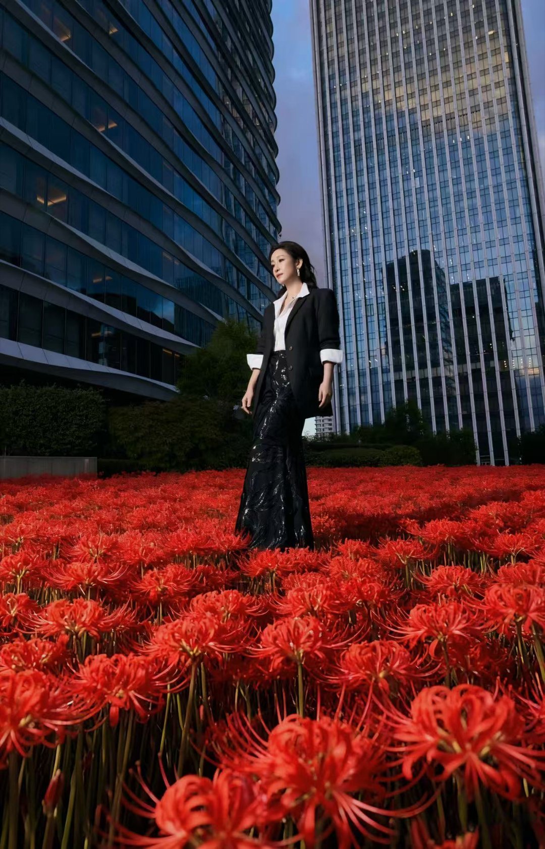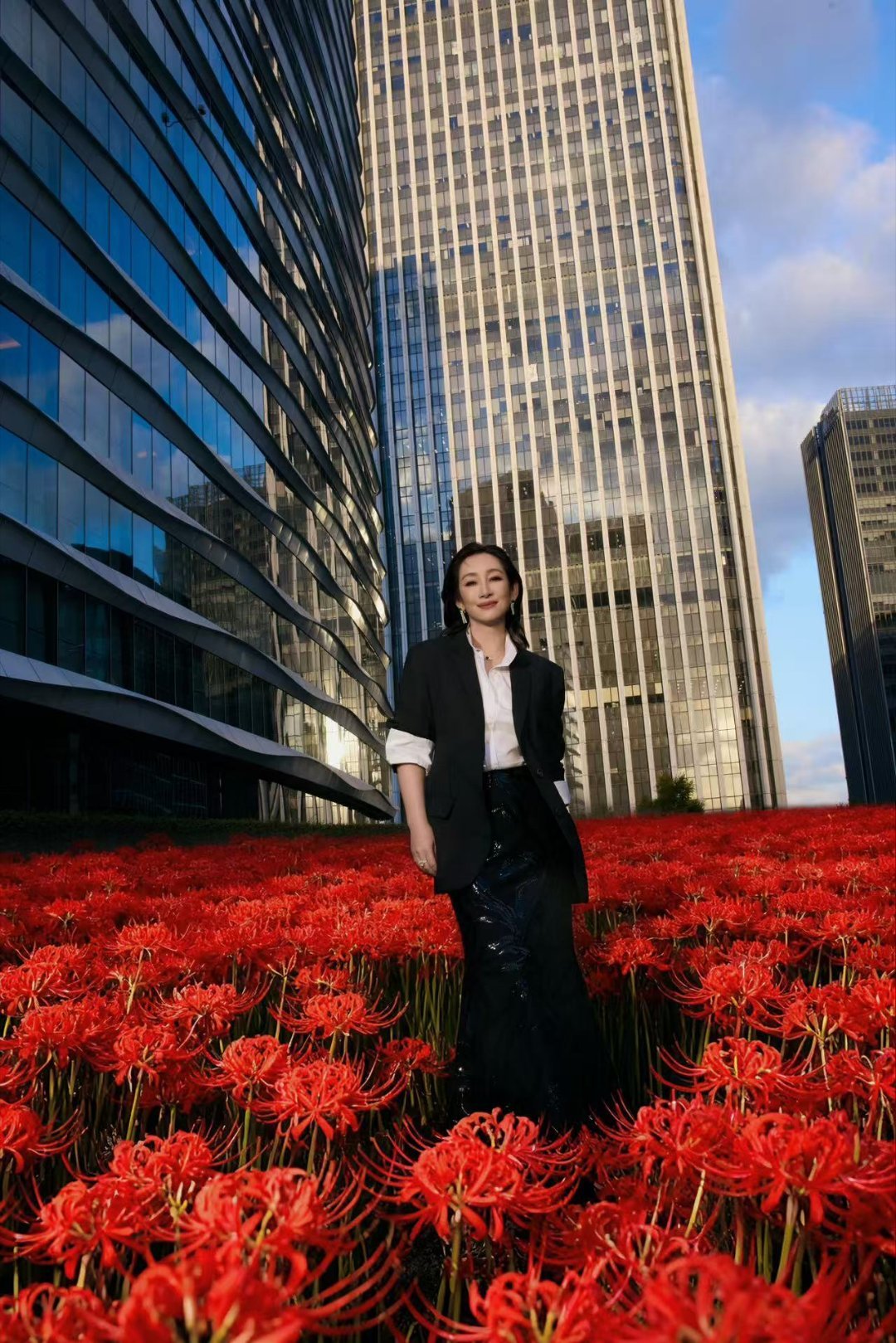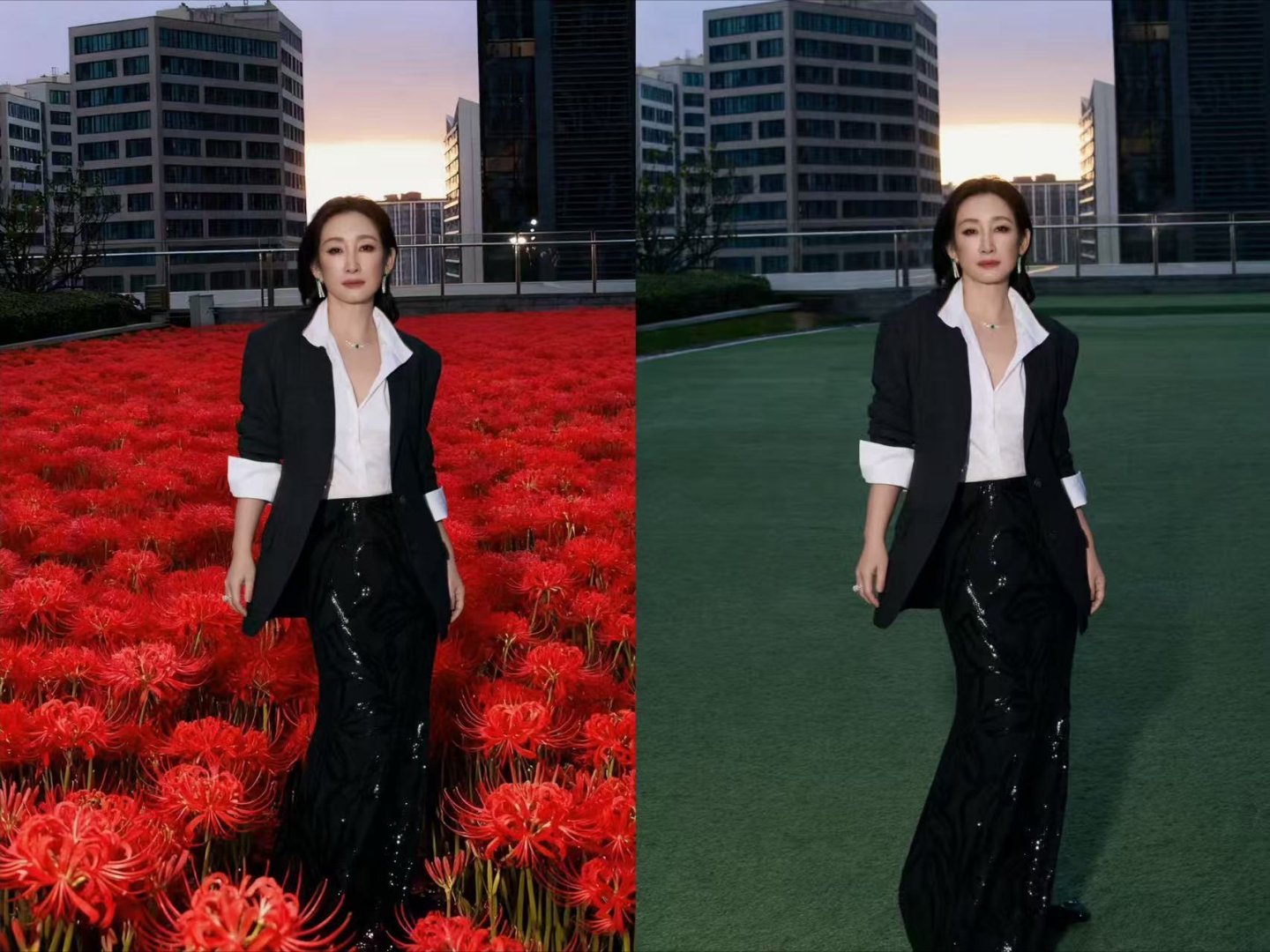 原来秦海璐背后的花海是AI生成的哈哈哈!姐也是拼了,不过这个AI花海和气场全开的西装造型适配度好高!