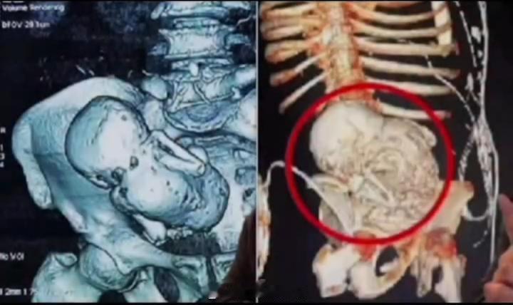 一位82岁的女性在她体内生了一个孩子,40年来她一直不知道。她抱怨胃痛,以为是肿瘤,但结果却令人难以置信