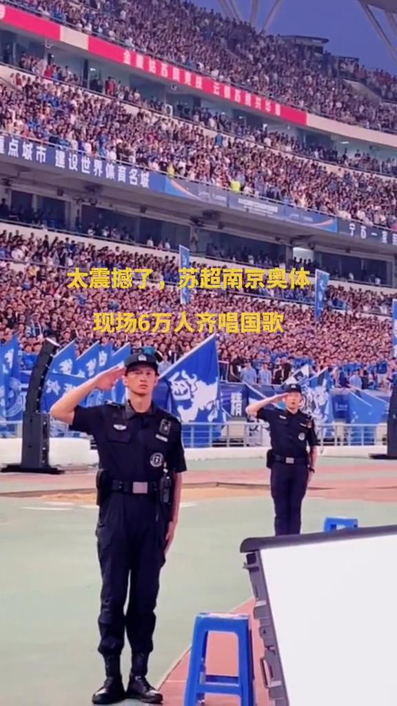 太震撼了,苏超南京奥体现场6万人齐唱国歌。