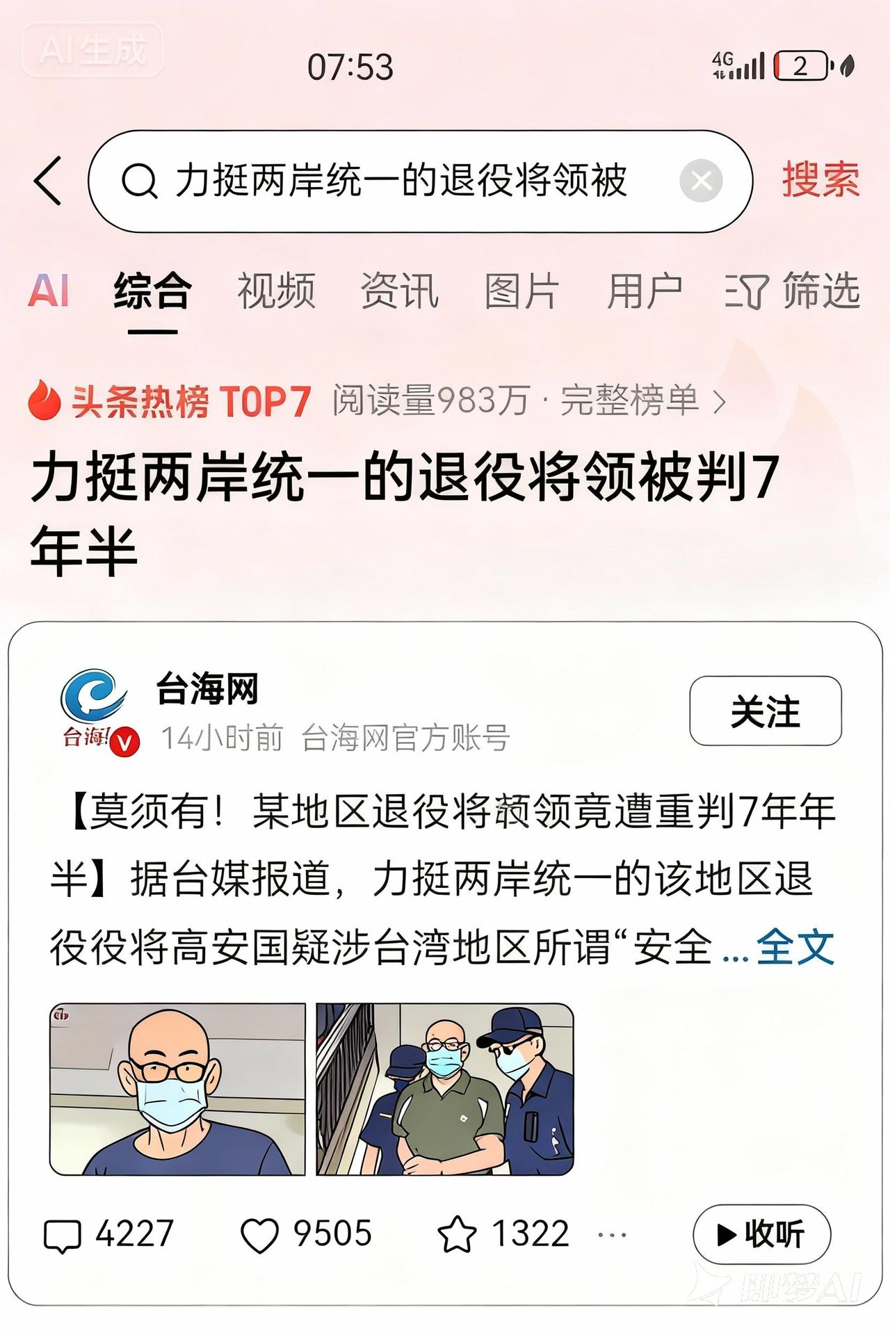 何为忠?何为奸?台独分子竟如此嚣张,力挺两岸统一的台退役中将被判7年!半台湾“安全法”究竟是法律,还是迫害 据台海网报道:高安国被判7年6个月刑期,同案被告安国女友刘逸蓁遭判6年10月徒刑。 高安国是台军退役中将,因发表促统言论被依据"安全法"判刑,高将军七年半刑期,是"台独"心虚的证明,也是他们畏惧统一呼声的恐惧!正义的声音正在响彻两岸海峡, (台湾《国家安全法》,是在1987年取代戒严令而实施的法律。明确规定了禁止为大陆地区等"境外敌对势力"发展组织、泄露秘密等行为。) 历史潮流,浩浩荡荡。从古至今,一切分裂国家的行径都已被碾碎在历史的车轮之下。今日“台独”的负隅顽抗,不过是统一伟业中的一缕杂音。 历史必将证明,统一属于两岸人民!
