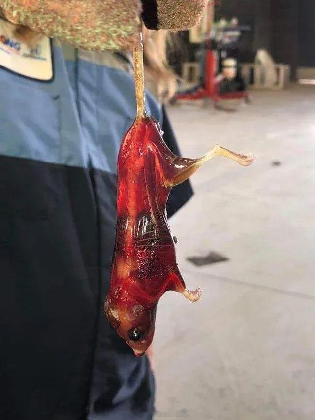 科学家托着一头通过体外受精受孕的 70 天的犀牛胎儿