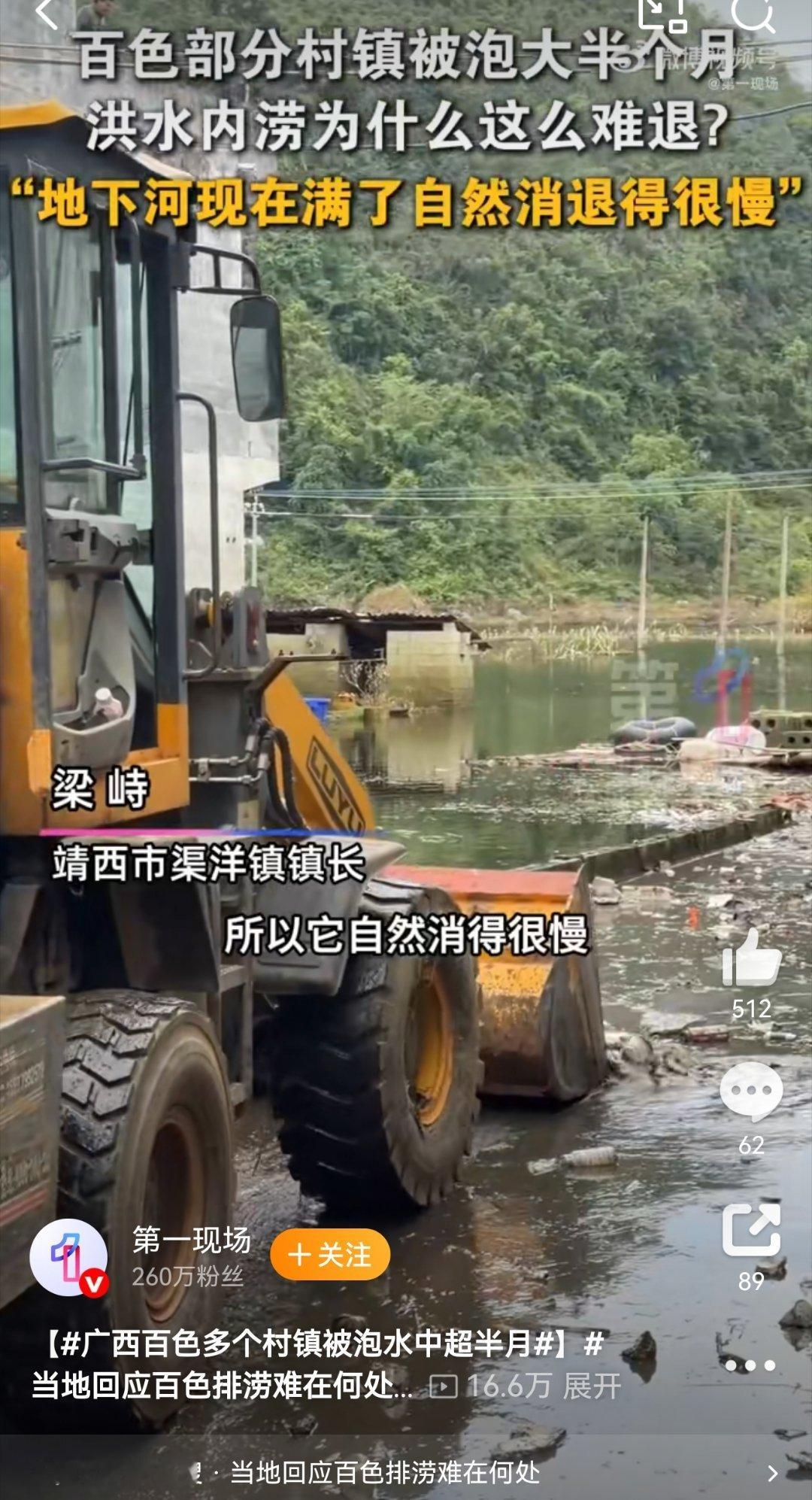 广西百色多村镇被淹超半月 排涝攻坚进行中