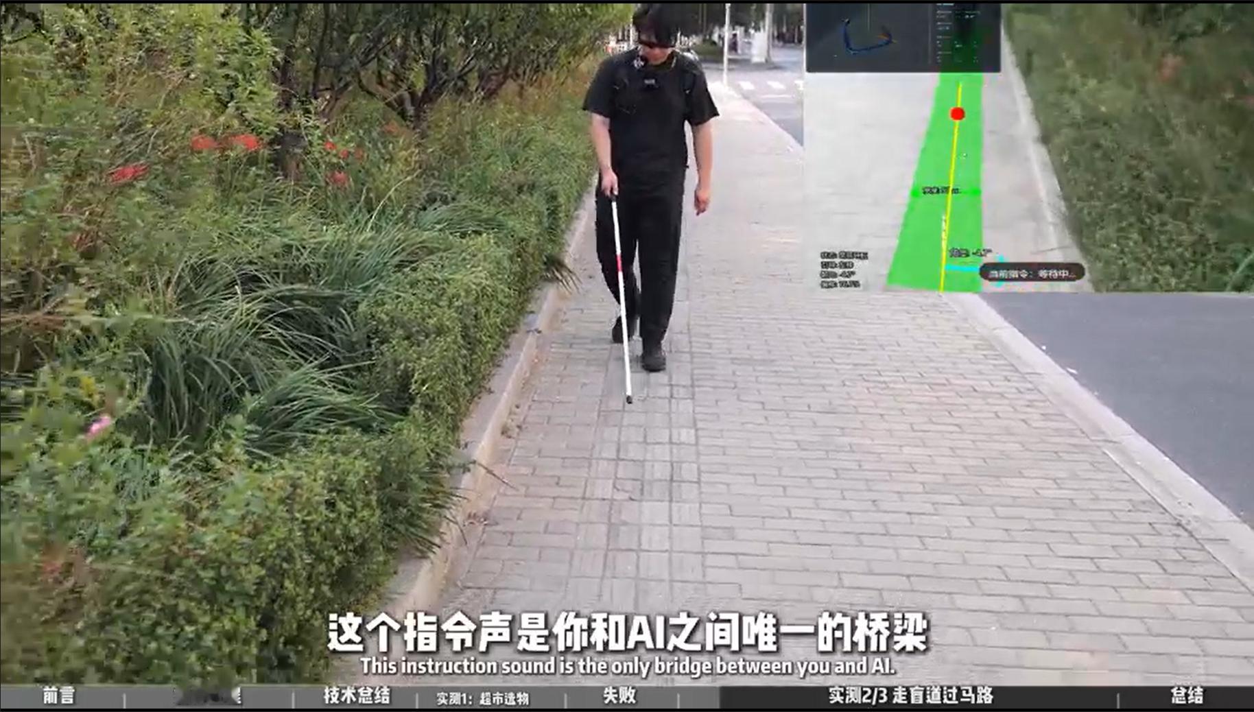 AI能帮视障群体做什么 这款眼镜基于开源模型Qwen—Omni开发,硬件成本不过百元,但可以实时识别盲道、红绿灯、障碍物,通过语音引导视障人士过马路、逛超市,甚至旅行。在测试当天,帆哥蒙上眼睛,仅靠这副眼镜,27分钟独立穿过四个街区。只有身体力行,才能更感同身受。