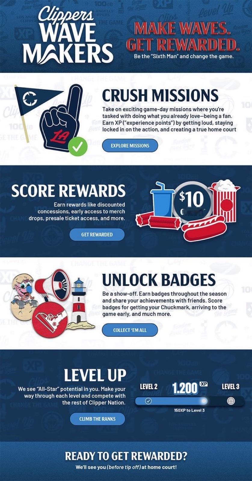 快船队本赛季推出了一个叫“Wave Makers”的球迷互动计划,不看花钱多少,只看参与热情。