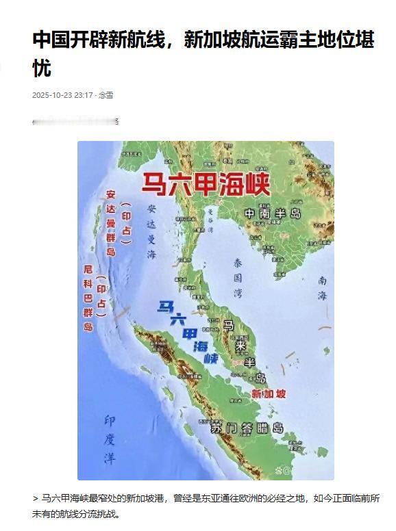 现在的新加坡,怕是真的坐不住了!为什么?因为中国人正在一步步砸掉他们端了几十年的金饭碗! 想想看,马六甲海峡那条黄金水道,每年给新加坡送去多少真金白银?但你们知道吗,这些钱多半是中国船只交的过路费!更讽刺的是,新加坡转头就用这些钱向美国交“保护费”——这不等于是我们中国人间接养着新加坡和美国吗? 但现在,这个游戏玩不下去了!一条条绕开马六甲的新通道正在把新加坡的“独家生意”变成“多家竞争”。 最先让新加坡坐不住的是北极那条“冰上丝绸之路”。 以前从上海到鹿特丹的货轮,非得挤过马六甲再穿苏伊士运河,一趟要四十多天,现在走北极航线直接近了2800海里,15天就能到,单趟能省80万美元的燃油费,30%的成本直接降下来。 2025年上半年北极航线的货运量已经冲到1800万吨,一年涨了45%,十年翻了13倍,其中35%的货都是中国船运的,全是以前必须走马六甲的液化天然气、铁矿石这些大宗商品。 更打脸的是,新加坡媒体还嘴硬说北极航线不安全、不环保,可实际数据摆着,2023年北极航线178艘船就一起轻微故障,事故率不到0.6%,而马六甲海峡每年都有海盗袭扰,2024年还有3艘船被武装登船。 环保方面更没法比,北极航线一趟能省300吨燃油,减碳近950吨,相当于种五万多棵树,反观马六甲海峡常年有两百多艘老旧货轮违规烧高硫燃油,到底谁不环保一目了然。 陆上的新通道更狠,直接把马六甲变成了“可选路线”而非“必经之路”。 2025年7月“郑和号”海公铁联运班列从昆明开出去,走中老铁路到老挝万象,再转公路到泰国港口,最后海运到孟加拉国吉大港,直接把路程缩短了1700公里,时间从35天砍到18天,效率翻了一倍还多。 以前西南的货物要先运到钦州港,再绕马六甲走海运,现在直接从印度洋出海,等于把马六甲给“绕过去了”。 这还只是其中一条,还有两条分支通过泰国铁路和港口连接印度洋,等于在中国西南和印度洋之间架了好几条“直达桥”。 更别提早就通车的中缅油气管道,直接把中东的原油通过管道送进中国,绕开了马六甲的海运风险,等于从根上挖了新加坡石油转运的墙角。 新加坡当然急了,一边砸1000多亿人民币建大士港,说要到2040年搞成全球最大自动化港口,年处理6500万标箱,想靠规模保住地位;一边又打破几十年的惯例,邀印度加入马六甲联合巡逻,试图拉外部力量稳住局势,甚至总理黄循财跑到中国签50亿美元的合作项目,转头又去美国买武器、谈合作,玩起了“左右逢源”的老套路。 但这些操作在实打实的新通道面前,更像急病乱投医。 行业专家早就算过,到2030年北极航线要占亚欧海运的10%,2050年可能到30%,到时候新加坡那占GDP7%、养着17万人的海运业,就得眼睁睁看着生意被抢走。 要知道新加坡的底气从来不是自己有多强,而是卡在了中国过去的“必经之路”上。 现在中国人硬生生开出了新路子,北极航线省时间、陆海通道更安全,以前被新加坡垄断的“过路费”生意,现在有了更划算的替代品。 新加坡自己也清楚,要是失去了中国这个最大客户,别说给美国交“保护费”,就连自己那“国际航运中心”的招牌都保不住。 这哪是中国人故意砸它的饭碗,实在是新加坡靠着地理吃老本的日子,碰上了中国搞基建、开新道的硬实力,所谓的“金饭碗”本就不是铁打的,现在被晃得叮当响,自然坐不住了。