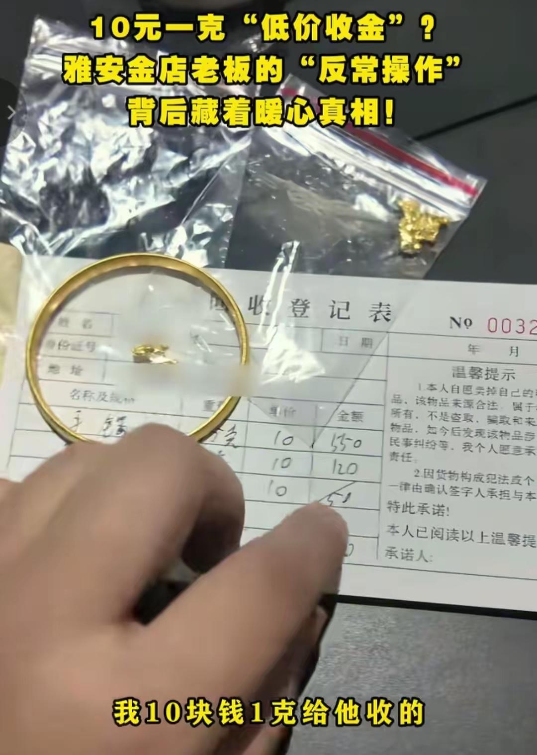 雅安市天全县有一个小孩带着72克黄金首饰来到金店里面售卖,老板看着孩子年龄这么小觉得他的首饰肯定是家里偷拿出来的,金店老板害怕自己不收孩子的黄金,孩子肯定会把黄金拿到别的地方去卖,如果遇到不良商家低价收购就麻烦了。于是金店老板便以10元一颗的价格收购了黄金总共付给了孩子720元,随后老板便发了一个视频在网上寻找孩子的父母表示将把黄金退还,随后金店老板通过物业群找到了孩子的父母退还了黄金,孩子的父母也退给了老板720元的收购钱。 有网友表示:这不和我小时候一样吗,拿我妈10块钱去买一毛钱的酸梅粉,老板把钱全扣下,给我一包酸梅粉,让我回家叫我妈去拿钱。 君子爱财,取之有道,做黄金生意的人真不在乎这一点黄金,何况是小孩子拿来卖,一想就明白,相信老板的人品是过硬的人。 我相信老板,如果想要吃掉这些黄金正常操作是,不收小孩子的黄金,然后找个人跟着小孩子到外面去收。 做这个买卖的人不是一般的有实力,每天现金的吞吐量,没准都要上百个,几万块钱在人家眼里不是多大的钱,为了这点钱惹上官司没必要的,不是一个阶层的人真没有办法沟通。 对此大家怎么看