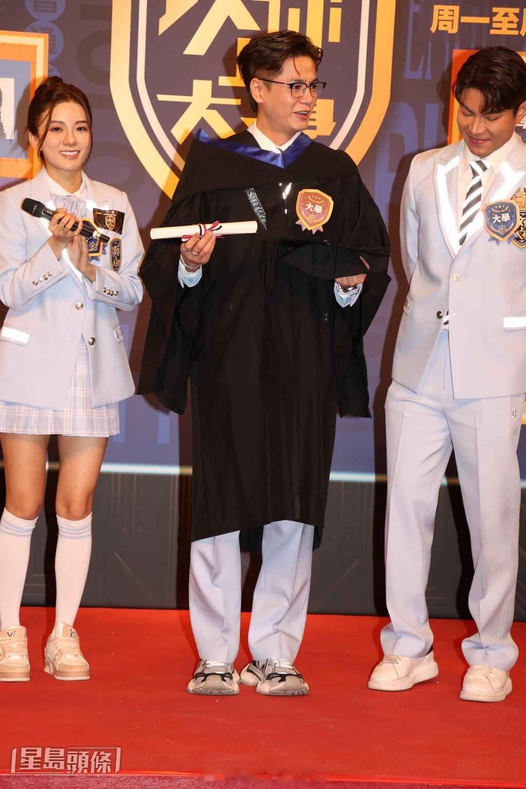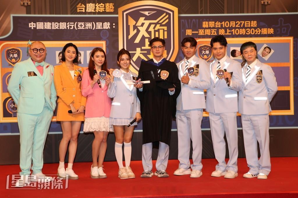 林盛斌(Bob)、施宇琪、袁文静、罗子溢、罗天宇等人今日(23日)节目《攻你上大学》记者会时,齐齐以校服look示人,更即场玩问答游戏,最后罗子溢胜出击败"剑桥大学"学霸施宇琪,获戴四方帽。