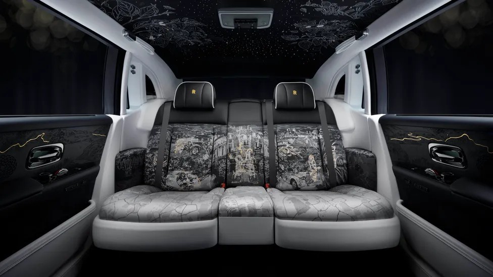 为庆祝幻影车型诞生100周年,劳斯莱斯推出 Phantom Centenary Private Collection 限量25台。每台车标配备18K金底座+24K金镀金欢庆女神立标,漆面中熔铸香槟色玻璃微粒,车轮刻满100道同心纹暗合百年密码。车辆内饰中,后座160,000针刺绣重现历代幻影历史画卷,车顶440,000针绣出亨利·莱斯花园的穆尔伯里树,门板激光雕刻3D木艺地图,甚至前排座椅暗藏“Roger Rabbit”彩蛋(致敬2003年复兴计划代号)。劳斯莱斯[超话]