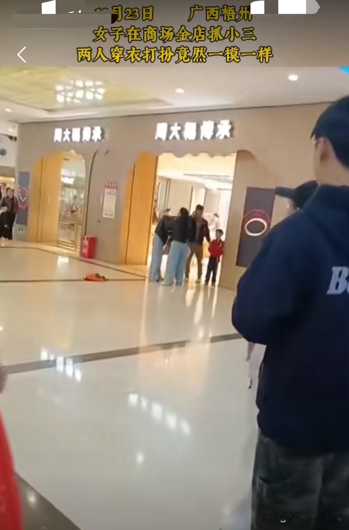 女子在商场金店抓住小三,两人居然穿衣打扮一模一样。 原配妻子抓着小三的头发就是一顿打,孩子在一旁哇哇大哭! 这男的真厉害,买东西都一式两份,原配一个小三一个,至少一碗水端平了。 不过打小三的时候还是辟着点孩子,这容易给孩子造成心理阴影。 我认为如果小三不知道男子有家庭还可以理解,如果知道对方有家庭有孩子,让人打死也是活该。婚外情小三 小三