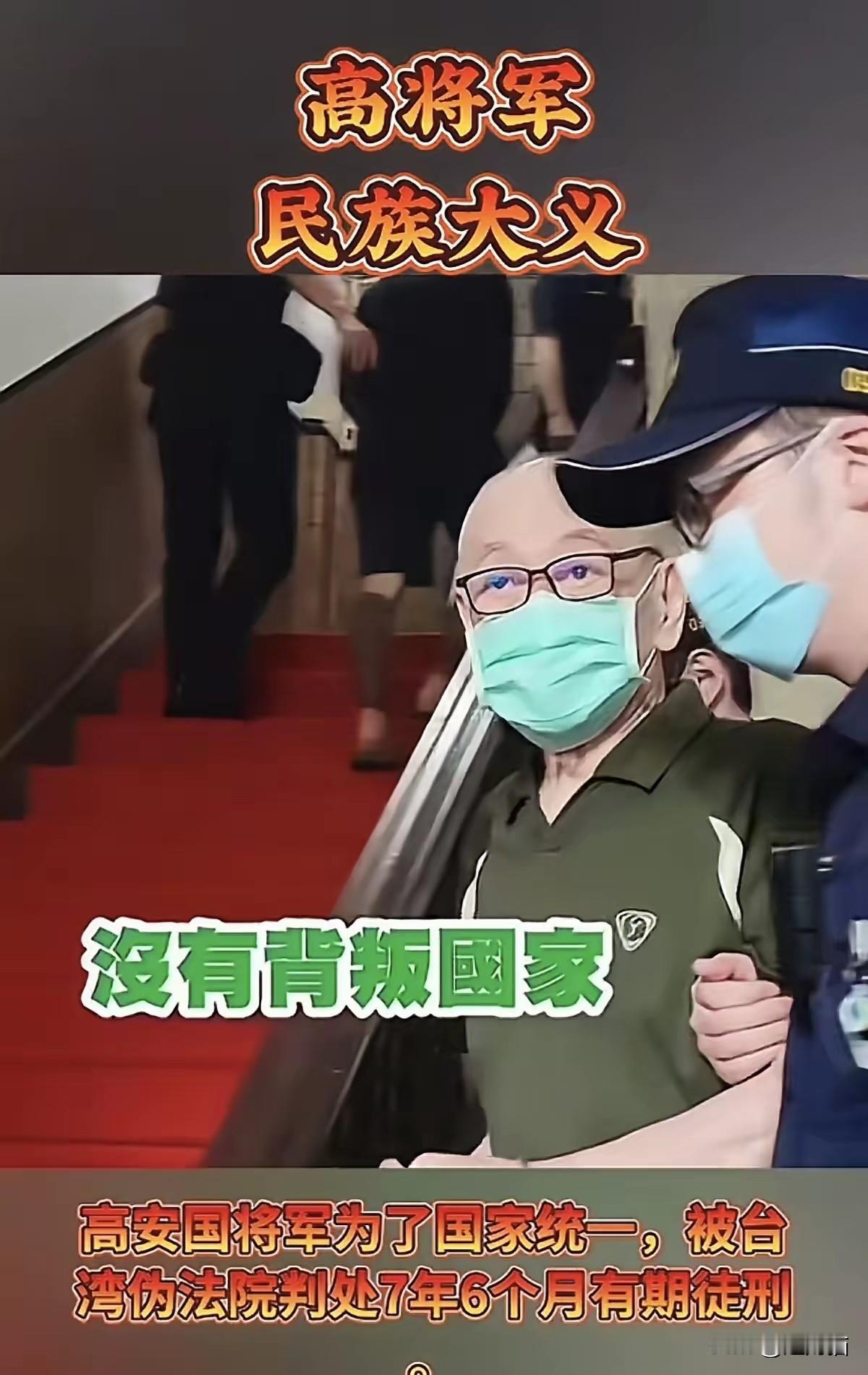 81岁台湾退役中将高安国:铁骨铮铮护统一,身陷囹圄志不屈 这个人叫高安国,台湾退役中将,81岁,因反对台独支持统一,夫妻二人均被台当局关进牢狱。高安国被判7年6个月,伴侣刘逸蓁遭判6年10个月。他曾穿着戎装,站在“反独促统”标语前,发表《致台湾将士》宣传片,宣扬“结合统派完成中国统一神圣使命”。结果去年年底,被台当局秘密抓捕起来了,直到近日被宣判。宣判当日,台湾当局的两名警察押解着他,有人问:背叛“国家”你后不后悔,他回答道:我没有背叛国家,胡说八道!81岁高龄,还在为国家的统一奔走相告,导致夫妻二人同时深陷牢狱之灾,致敬高将军!除了高将军夫人,侯绍康遭判刑6年、台湾退役将领张胜豪遭判5年8月、台湾退役将领邱荣鸿遭判2年6月、陈敬淮遭判3年8月。这才是有铮铮铁骨的中国军人,这才是不忘本的炎黄子孙。希望你们保重身体,不久的将来,定能亲眼目睹台湾回归的场景,而那些为你们戴上镣铐的人,必将接受历史和民族的审判! 81岁是什么年纪?本该是坐在藤椅上晒晒太阳、听孙辈讲琐事的年纪,可高安国却穿着笔挺的戎装,站在镜头前喊出“完成中国统一神圣使命”——这份勇气,哪是“难得”两个字能概括的?他心里比谁都清楚,在“台独”势力把持的台湾,说这样的话、做这样的事,无异于在刀尖上行走,可他偏要走,还要带着更多统派同胞一起走,因为他始终记得自己是中国军人,“护统一”从来不是选择题,是刻在骨子里的使命。 台当局的手段有多卑劣?用“秘密抓捕”的方式把人扣下,连基本的程序正义都不顾,等到宣判才敢把消息放出来,无非是怕民众看到81岁老人戴着手铐的样子,怕统派的声音再扩散。可他们忘了,高安国在法庭上那句“我没有背叛国家”,早把他们的虚伪戳得稀碎——谁在背叛国家?是那些拿着台湾民众的纳税钱,却勾结外部势力、妄图把台湾从中国分裂出去的人;谁在坚守正义?是高安国这样哪怕身陷牢狱,也不肯改口说一句“分裂”的炎黄子孙。 再看看这份判刑名单,侯绍康、张胜豪、邱荣鸿、陈敬淮……一个个都是敢跟“台独”叫板的硬骨头。台当局以为靠“判刑”就能吓退统派,却不知这样的打压只会让更多人看清真相:他们所谓的“法治”,不过是针对统一力量的工具;他们喊的“民主”,在维护国家主权面前连半分分量都没有。就像高安国当年在宣传片里说的,“结合统派完成统一”,现在这些被判刑的统派人士,恰恰成了凝聚更多力量的火种——越打压,越坚定;越囚禁,越光明。 更让人动容的是高安国夫妻二人的相守,一个被判7年6个月,一个被判6年10个月,明明知道会有这样的后果,却没一个人选择退缩。这份“夫妻同心护统一”的情谊,比任何口号都有力量。81岁的高安国或许会在牢里度过几年时光,但他心里一定清楚,自己不是在“坐牢”,是在为统一事业坚守;那些给他们戴镣铐的人,看似暂时得意,实则早被钉在了历史的耻辱柱上——等到台湾真正回归的那天,高安国和所有统派人士,都会是民族的功臣,而“台独”分子,只会被永远钉在耻辱柱上,接受子孙后代的唾骂。