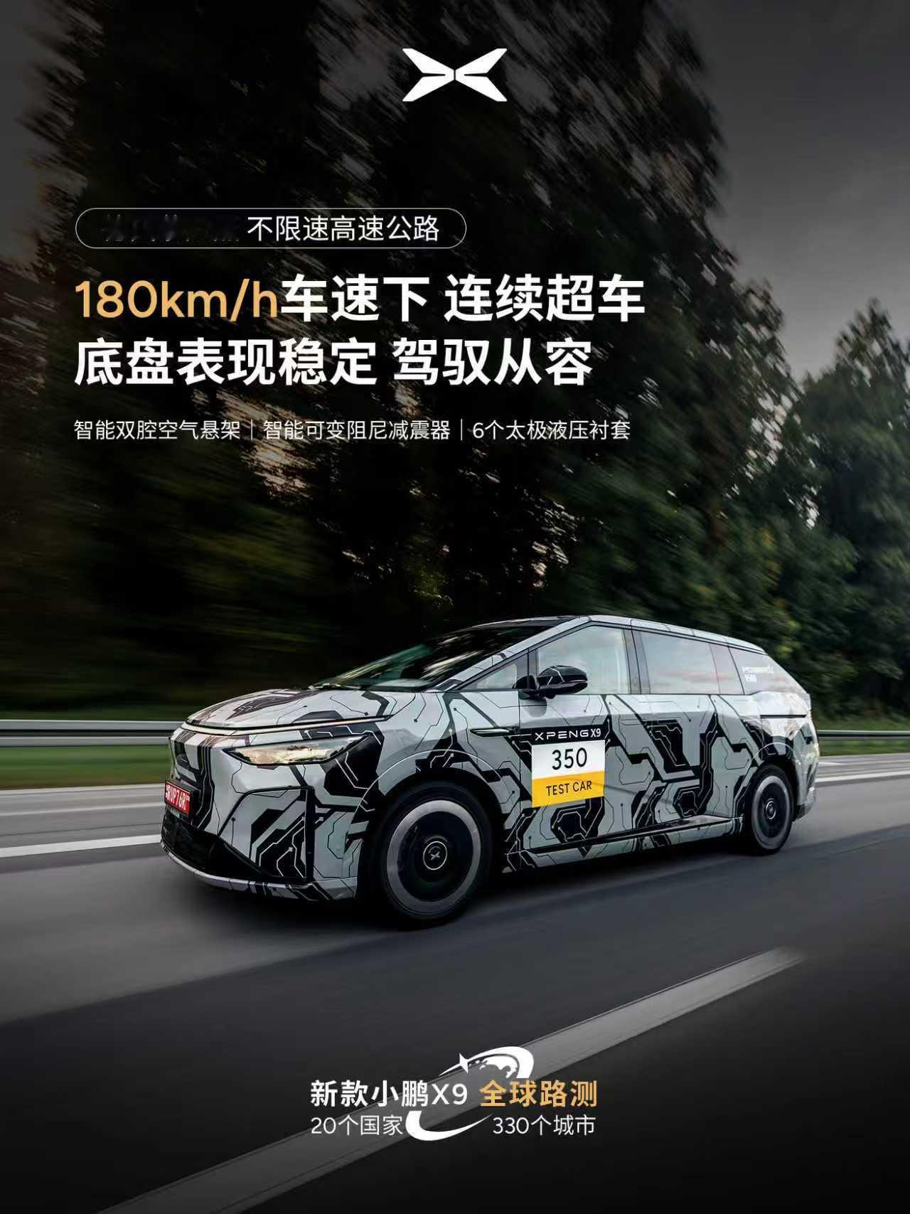 何小鹏带队全球路测新款X9小鹏X9德国180码连超10车滴水不洒