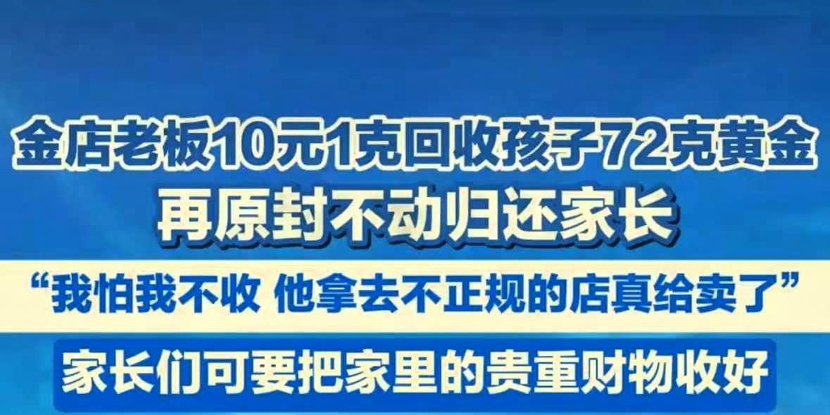近日,四川雅安,正常市价能卖七万多,他却只出价10元/克,收完立刻发视频、刷遍周边业主群急寻家长,最终把黄金原封不动交还给了孩子家人。 老板一眼就看穿黄金是孩子从家里偷拿的——要是按市价收,孩子拿着巨款可能乱花,甚至被不法分子盯上;要是直接拒绝,不懂行情的娃说不定转头就被黑店坑走,七万多的家当可能再也找不回来。 他用“低价锁货”的机智操作先稳住黄金,再主动当起“寻人使者”,既守住了别人的财产,又没让孩子因为害怕跑远。对比那些见利忘义的商家,这位老板明明能赚差价,却偏偏选择“多管闲事”,用行动诠释了“生意有道,良心为先”。 现在太多人遇到事只想着明哲保身,而他却主动站出来,用暖心的方式化解了一场家庭危机。这样有温度、有担当的商家,不仅值得顾客信赖,更该被全网点赞!