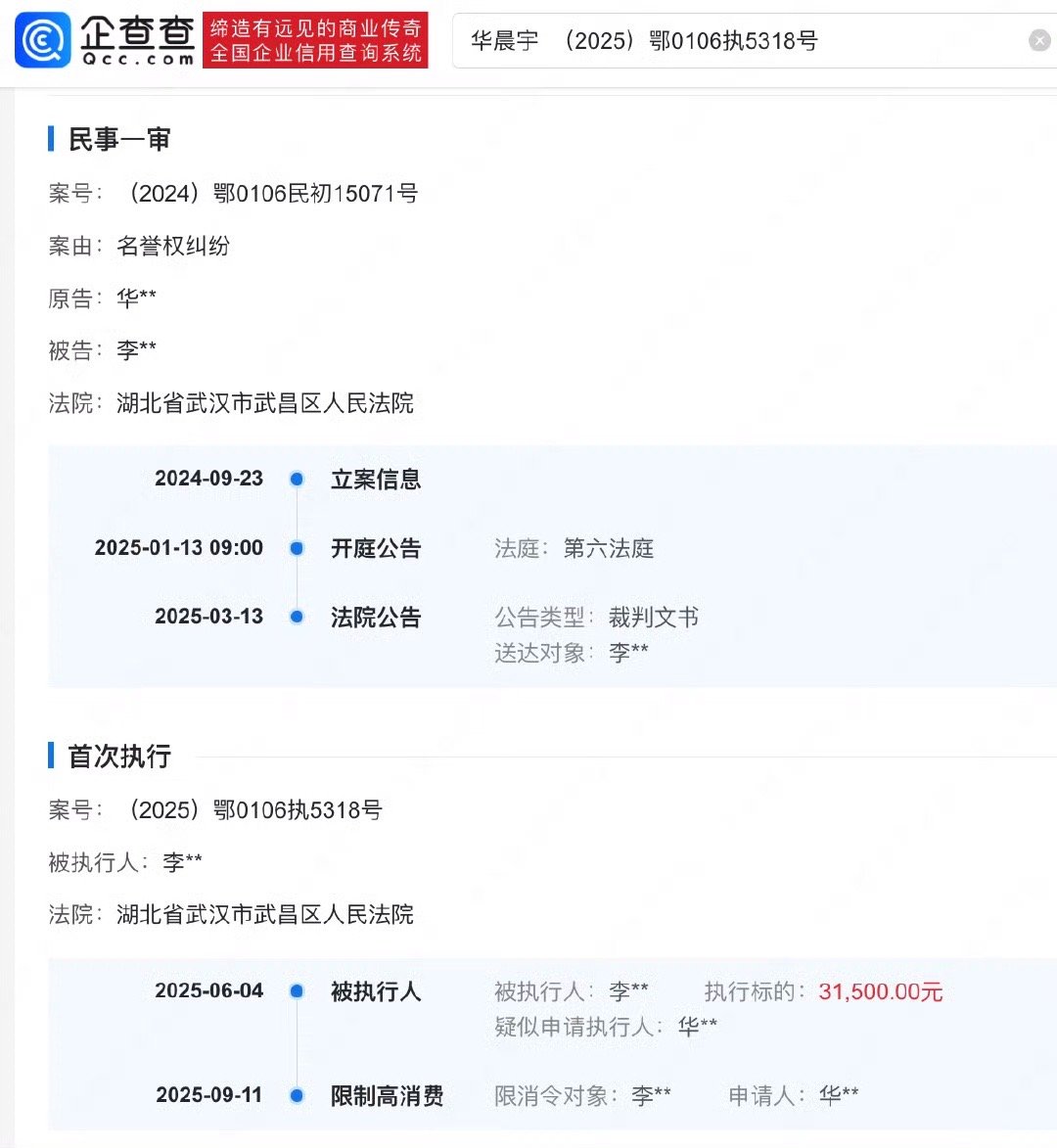 华晨宇告黑胜诉后,黑粉不赔偿3w被限消