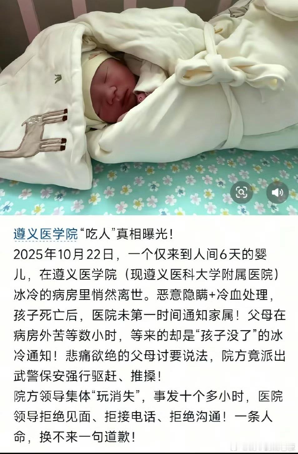 出生6天婴儿住院期间不幸死亡 刚睁眼6天的小生命,没捂热襁褓,没记熟奶香,就没能从病房平安走出来,父母得有多伤心!