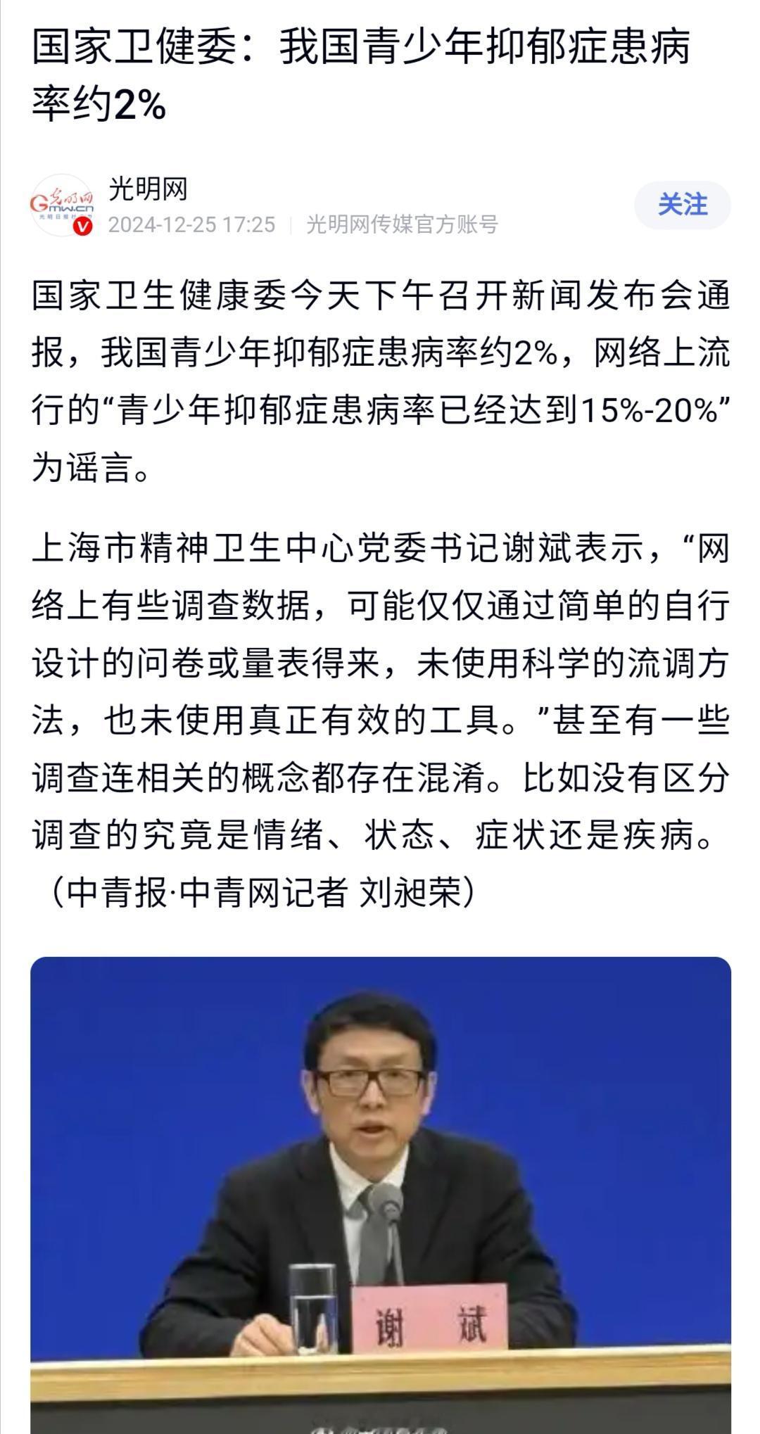 这些措施能落实吗? 促进学生心理健康,怎么让文件上的措施落到实处,才是关键。 4年前,教育部实施了中小学生作业管理、手机管理、体质管理、睡眠管理、读物管理等五项管理,有多少措施不折不扣落实了?作业负担沉重、睡眠不足等问题,依旧困惑着中小学生。 当前,中小学生心理健康问题,已经到了不得不出重拳治理的地步了。 就按国家卫健委公布的我国青少年抑郁症患病率2%测算,2亿中小学生,就是400万。一所3000人学校的校长告诉我,他们学校就有140多名学生长期休学在家,原因是抑郁、厌学。 不能再为追求升学率,而制造大批有心理健康问题的学生。很多家庭为孩子的抑郁而痛苦,这也是社会难以承受之重。