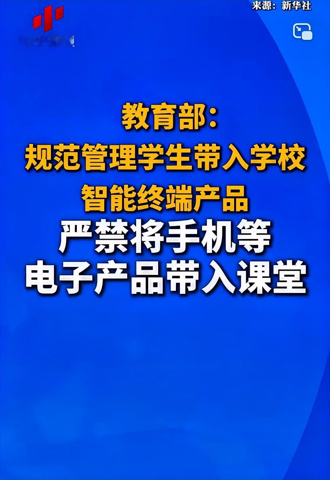 刚刚教育部对电子产品下手,规定中小学生不得将手机等电子产品带入课堂! 注意,不是将这些电子终端设备禁入校园,只是教室禁带!教育部此举主要是为了应对中小学生面临的心理健康问题,旨在通过减少电子产品的干扰,保障学生的身心健康,培养孩子健康上网习惯。 毕竟,手机等电子产品的过度使用,不仅会分散学习注意力,还可能侵蚀学生的休息时间,影响心理健康。 同时还同步推出其它措施来保障孩子们的心理健康: 减负:鼓励中小学每周设置一天"无作业日";严禁布置机械重复、惩罚性作业;减少考试排名。 加练:全面落实每天不低于2小时的综合体育活动;推行"能出汗"的体育课。 保觉:严格执行睡眠管理规定,坚决遏制挤占睡眠时间的行为,确保学生有充分的休息时间。 联动:鼓励家长和学生共同开展"息屏行动";学校每学期至少组织2次家庭教育指导活动。 要我说,只要在学校安装信号屏蔽器、网络游戏登陆必须通过人脸识别、不通过手机布置作业、教育公平化快速推进就行了。至于这些政策,效果怎么样不知道,但其执行情况就是个大大问号……