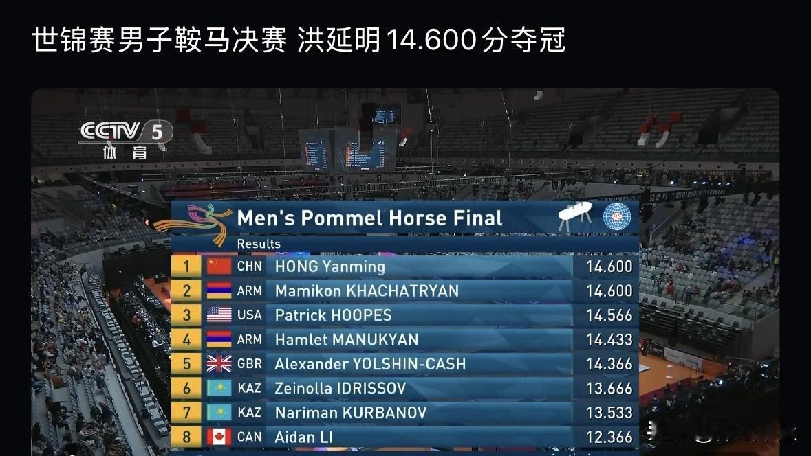 洪延明夺得男子鞍马冠军🏆 印尼体操世锦赛男子鞍马决赛,中国小将洪延明以14.60分夺冠🏆 中国男体操 体操世锦赛队测 张博恒鞍马 体操冠军