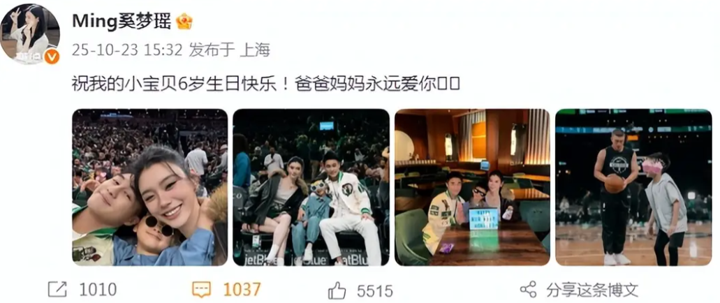 奚梦瑶庆祝儿子满6岁,小王子长势喜人,露正脸和爸爸何猷君超像
