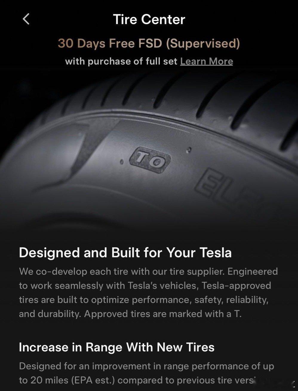在特斯拉北美,购买全套轮胎均可享受 30 天的 FSD(监督)免费试用。