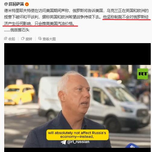 德米特里耶夫的意思:一、制裁不会对俄罗斯经济产生任何影响,二、制裁只会推高美国的汽油价格。 按照德米特里耶夫的逻辑,那就好办了,对于美国的制裁,俄罗斯大可不必在意、没必要劳心费神,更没有必要风尘仆仆的跑到美国告诉川普,泽连斯基在英国和欧洲的授意下破坏和平。 既然制裁会推高美国的汽油价格,那就欢迎美国制裁啊,因为美国越是制裁,美国油价就越高,也许,这不就是俄罗斯乐见其成的事儿嘛。所以,千万别去告诉美国又这又那的,就让川普使劲的折腾,使劲的制裁,看看到头来真正受到制裁的是谁。