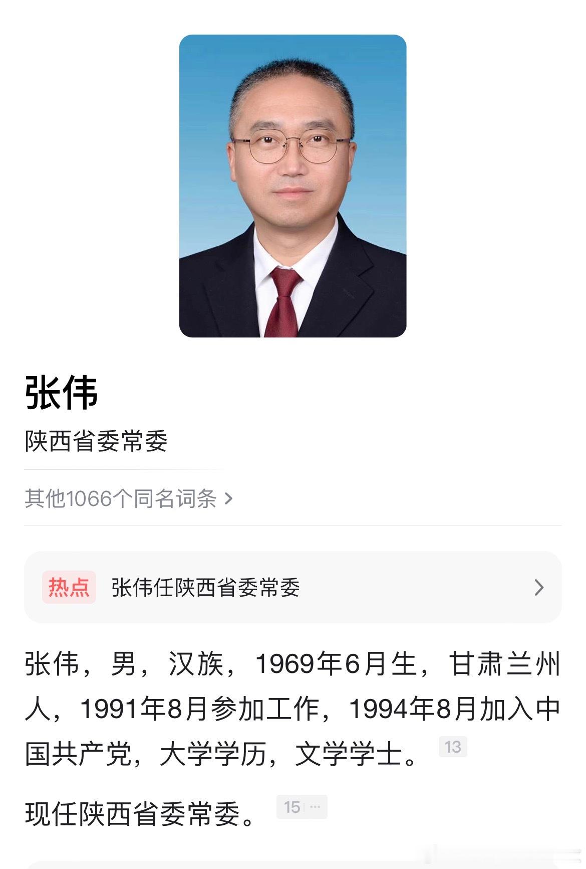 张伟任陕西省委常委。热点现场