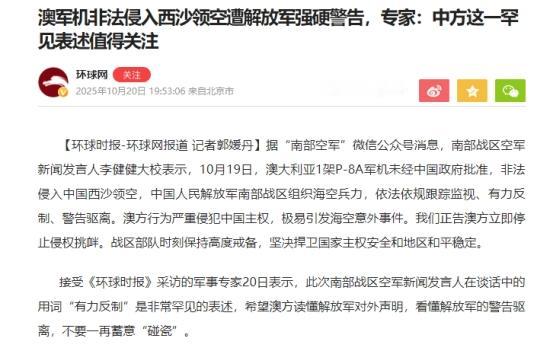澳大利亚上次来南海,被我们的激光给照了一下,雷达烧毁,飞行员眼睛致盲,当时还反过来说我们威胁他们的飞行安全!这才时隔一年多吧,又是派了一架p-8A跑到我们西沙领空来撒野。 第一次所谓的“激光事件”,实际是澳大利亚军机多次未经批准,跑到我国南海相关空域搞抵近侦察,不顾我方的反复警告,往西沙领空逼近。 按照国际惯例,任何国家的领空都是神圣不可侵犯的,就像你家院子不能随便让人闯一样,解放军肯定要采取措施维护主权。 当时官方通报的是组织海空兵力进行识别查证、警告驱离,所谓激光照射可能是驱离过程中的一种警告手段,但绝对没有造成澳方军机损坏或人员受伤,这些都是后来被放大的传言。 而澳大利亚那边呢,明明是自己闯了别人的禁区,却转头就发布声明,说我们的拦截“不安全”,还向我们使馆表达“关切”,这就好比小偷闯进别人家里被发现,反而指责主人不该拦着他,简直是强盗逻辑。 10月19日,澳大利亚还是老一套配方,派出的还是同款反潜巡逻机,目标还是我们的西沙领空。 根据国防部的通报,10月19号这架军机未经中国政府批准,非法侵入西沙领空,我们南部战区立刻组织海空兵力,依法依规进行跟踪监视、有力反制、警告驱离。 结果澳方又开始倒打一耙,说我们的战机向他们附近投掷照明弹,对他们的飞机和人员构成风险。 但有意思的是,他们自己也承认,没有人员受伤,军机也没受损,这就很能说明问题了。 如果我们的操作真像他们说的“不安全不专业”,他们的飞机怎么可能完好无损地回去?说白了,这就是澳大利亚的“标准化碰瓷流程”:先非法侵入,再炒作我们的合法反制,最后塑造自己“受害者”的形象,既向美国表了忠心,又刷了存在感,可谓一举两得。 这些年美国一直想在亚太地区搞小圈子,拉拢盟友围堵中国,而澳大利亚作为美国的铁杆盟友,自然要主动表现。 但澳大利亚这么做其实特别短视,完全是在拿自己的国家利益当赌注。 中澳之间有很强的经济互补性,澳大利亚的矿产、农产品很多都依赖中国市场,对华贸易在它的经济中占比很高。 可它一边在经济上靠着中国赚钱,一边在军事上跟着美国挑衅中国,这种两面派的做法根本长久不了。 而且澳大利亚自己也很清楚,中国的军事实力早就今非昔比,在南海地区,我们的海空力量完全有能力捍卫国家主权,它派一架军机来挑衅,根本起不到任何威慑作用,反而会让中澳两军关系变得更紧张,增加意外事件的风险。 那为什么我们不采取更严厉的措施,一次性让澳大利亚不敢再来?这其实体现了我们的战略定力和克制了。 我们的目标是维护南海的和平稳定,不是要跟谁搞对抗。 澳大利亚的挑衅本质上是虚张声势,它自己也知道不敢真的跟中国发生冲突,所以我们的应对既要坚决捍卫主权,又要保持专业克制,不给它炒作的借口。 而且从长远来看,随着中国综合国力的不断提升,我们在南海的维权能力会越来越强,澳大利亚这种徒劳的挑衅只会越来越没意义。 就像军事专家说的,澳大利亚下次再碰瓷,可能遇到的就是更先进的战机了,到时候它能不能全身而退,可就不好说了。