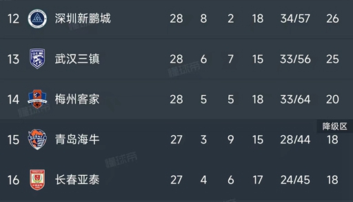 北京时间10月25日,昨晚的中超第28轮,深圳新鹏城2-1战胜了武汉三镇,迎来两连胜,积分上涨到26分,意味着他们基本实现了保级! 深圳原本的局势很危险,加上赛程不占优,要对阵国安、三镇、蓉城和申花,但是陈涛上任之后,迅速完成两连胜拿满6分,降级的危机基本解除。 这样一来,降级的名额就变成了3选2,梅州客家昨晚1-4惨败云南玉昆,积分是20分继续排在倒数第三,最后两轮对阵大连英博和北京国安。 青岛海牛和长春亚泰都是18分处于降级区,海牛最后三轮的对手是北京国安、武汉三镇、浙江队 亚泰最后三轮的对手分别是天津津门虎、北京国安和青岛西海岸!
