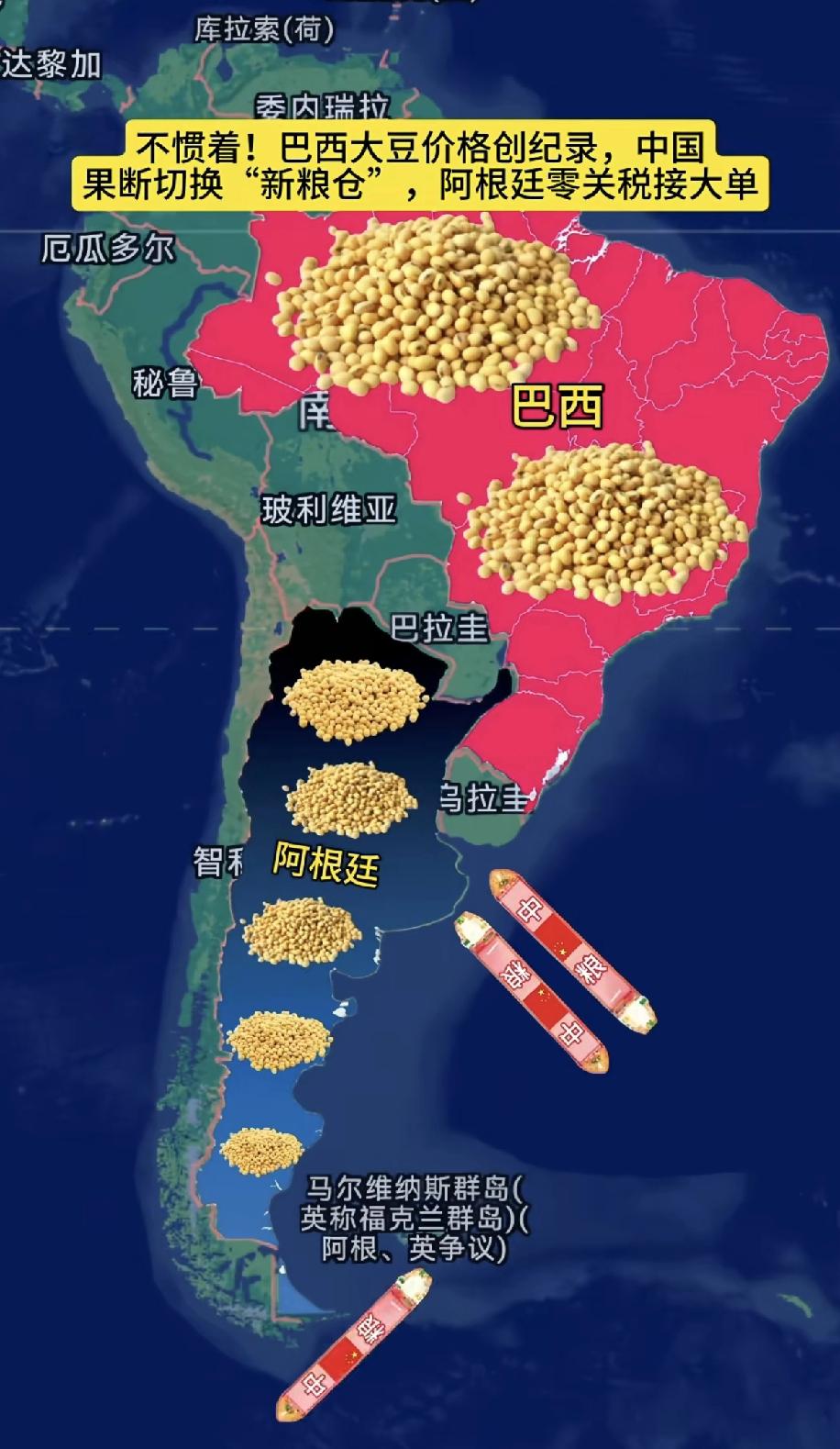 美洲大豆吃不完,简直吃不完,不买老美有巴西,不买巴西有阿根廷,后面还有加拿大,乌拉圭排队等着拉呢! 特朗普是看在眼里,急在心里,自己家豆子烂地里,然后他统战巴西,巴西涨价,谁知道阿根廷出来搅局。