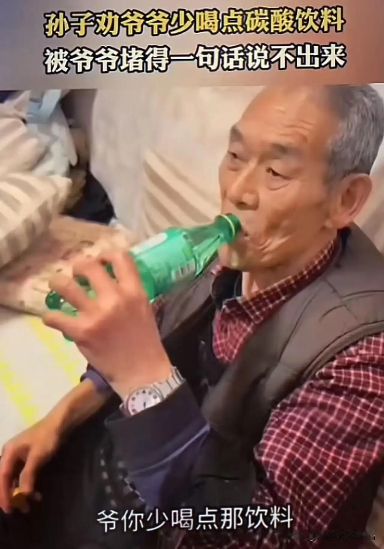 笑不活了!孙子劝爷爷少喝点碳酸饮料icon,被爷爷堵得一句话都说不出来! 自从爷爷喝了一次碳酸饮料后,就像打开了新世界的大门,一下子就上瘾了。 打那以后,他简直把碳酸饮料当成了水,每天不喝上几口就浑身不得劲儿。 孙子看在眼里,急在心里。他可是知道,碳酸饮料喝多了对身体一点儿好处都没有,尤其是爷爷年纪大了,身体各项机能都不如从前。 于是孙子苦口婆心地劝道:“爷爷,您可得少喝点那饮料呀,这东西喝多了对身体不好,您看您年纪大了,更得注意保养身体不是?” 谁知道,爷爷说:“我现在不喝,那我等什么时候喝?难不成等你们给我上坟的时候喝啊?” 这一番话,直接把孙子给噎得够呛,他张了张嘴,想说点什么反驳,可话到嘴边又咽了回去,愣是一句话都说不出来! 再一琢磨爷爷这话,爷爷都80多岁了,好像还真有那么点儿道理…… 这句话一出口,瞬间让孙子哑口无言,也让所有听到的人都忍不住笑出声来。毕竟,谁都知道,爷爷这番话虽然带着点调侃,但也折射出一种人生的智慧:活着,才是最重要的事。我们总在忙碌中忘了,人生的意义不在于追求长久的健康,而在于每一天都能心怀感恩、笑对生活。 回头想想,爷爷的那句“等我上坟的时候喝”背后,藏着的是一种对生命的坦然和对生活的热爱。也许,他知道,人生不在于延长的时间,而在于用心去感受每一刻的美好。就像他每天坚持喝碳酸饮料,虽然不健康,但那是他的小确幸,是他对生活的一点点“调味料”。 这不禁让人深思:我们是不是太过追求健康,反而忽略了生活的本质?我们是否也像孙子一样,担心未来、担心健康,却忘了活在当下?其实,生命的意义,或许就在于那份对生活的热爱和那份敢于享受的勇气。 更何况,爷爷的“少喝点”其实也不是完全否定,只是提醒:生活要有节制,快乐要有度。毕竟,人生不可能一帆风顺,偶尔放纵一下,也是一种对自我的善待。只要心态放得开,活得开心,健康自然也会跟着来。 这件事让我们看到:年龄不是束缚,而是一份智慧的积累。爷爷用他的行动告诉我们:不论年龄多大,都要有生活的热情和对美好的追求。或许,我们每个人都应该像爷爷一样,学会在平凡中找到那份属于自己的幸福感。 所以,别再为那些“健康饮食”而过度焦虑了。人生短暂,何不多喝点碳酸饮料,笑着面对每一个今天?也许,正是这些小小的“放纵”,才让我们的生活变得更加丰富多彩。你说,是不是呢?头号周刊 喝碳酸饮料有好处吗
