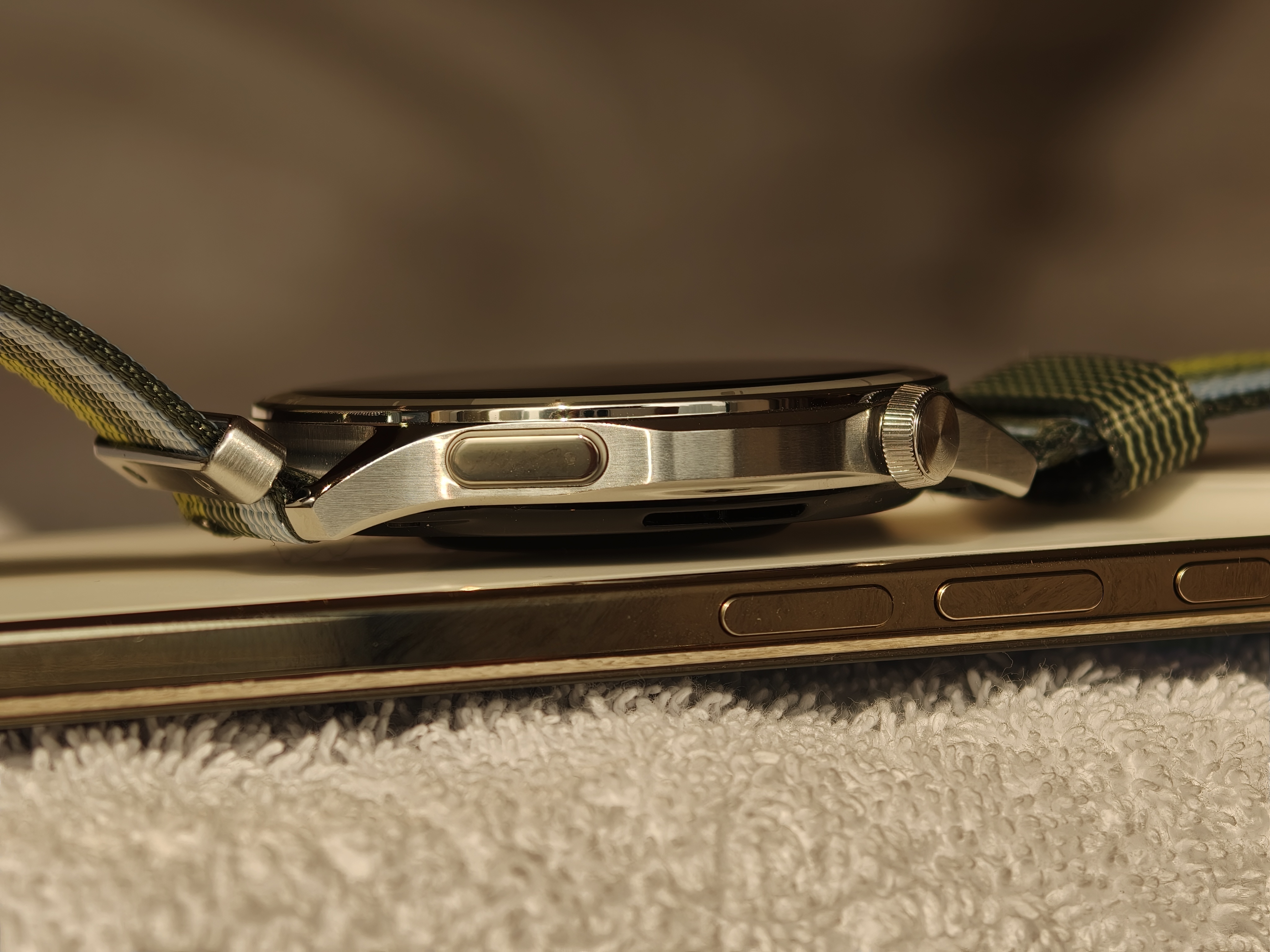 这次手表很轻很薄,和 iPhone Air 对比一下就厚了那么一点点,在智能手表这个品类还是非常薄的,而且我本来以为很薄了之后续航不太好,但是我前两天出来充满电之后,现在已经用了三天了,还有66%的电量。