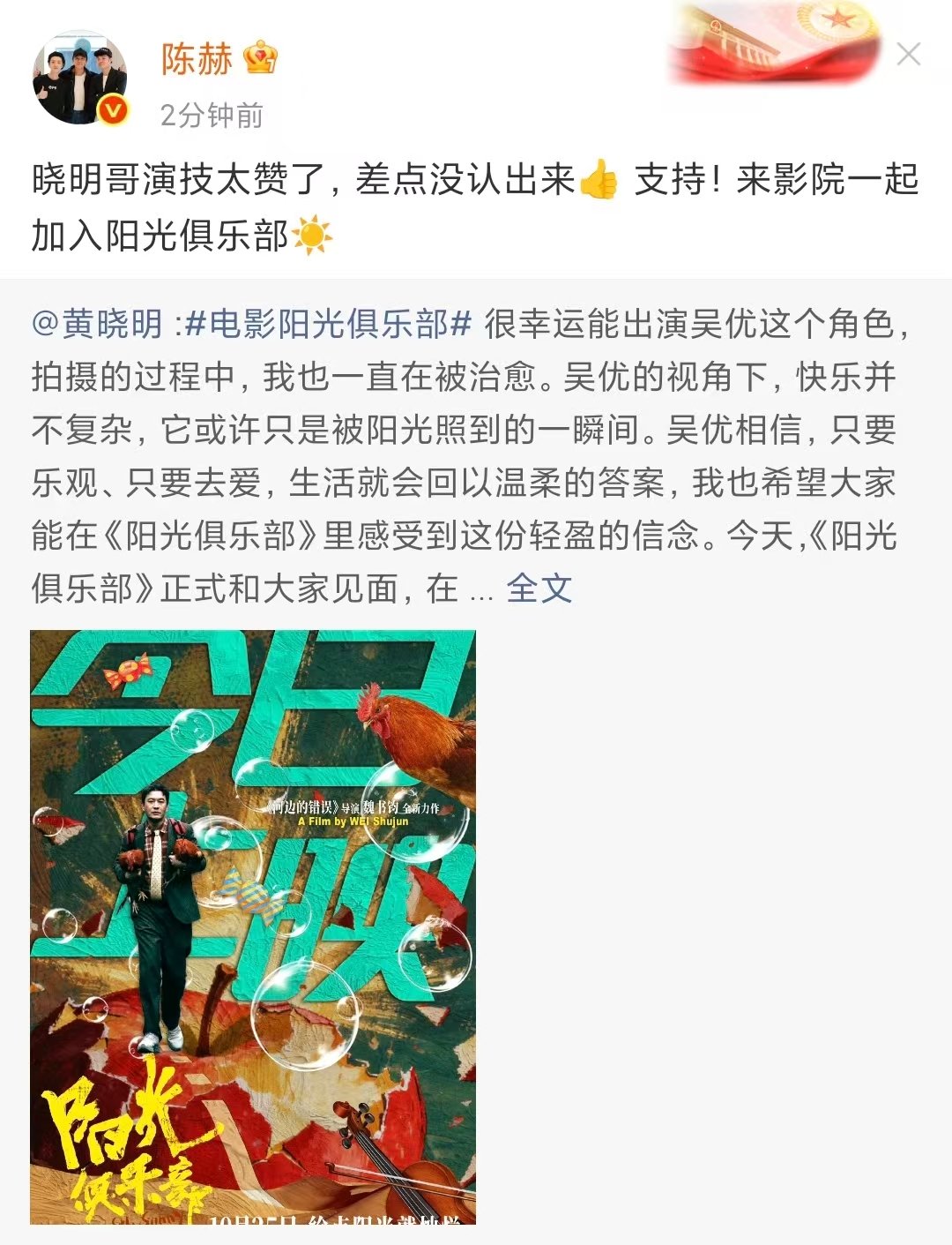 陈赫说晓明哥演技太赞了陈赫说差点没认出来黄晓明陈赫说差点没认出来黄晓明 同意,演技真的很棒 ​​​