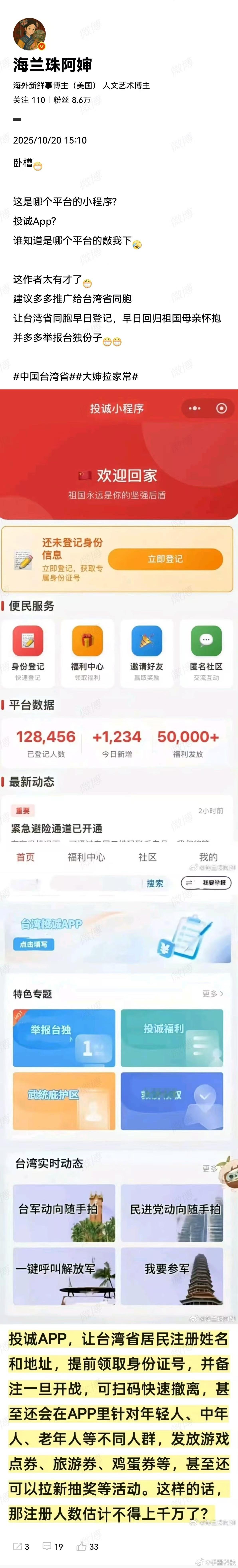 台湾前两天刷到有个产品经理脑洞大开,发了一个APP创意,思路特别好,总结就是走群众路线,团建岛上的民众,但发物资要靠基层,目前还没办法运进去。不管怎么说,我们都希望早日完成祖国统一大业!
