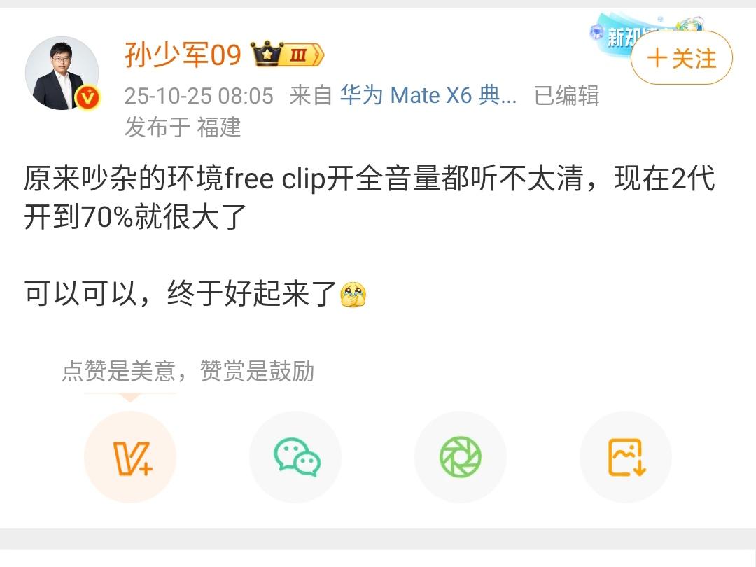 孙少军:原来吵杂的环境free clip开全音量都听不太清,现在2代开到70%就很大了! 可以可以,终于好起来了。 其实也不是没有缺点这个有点难装,每次都要翻两遍才能给它装进去。由于长得太过于一致,放在耳机仓中的时候,其实盲装的时候不太分得清哪边是正哪边是反。 不知道各位有何看法,欢迎评论区留言。