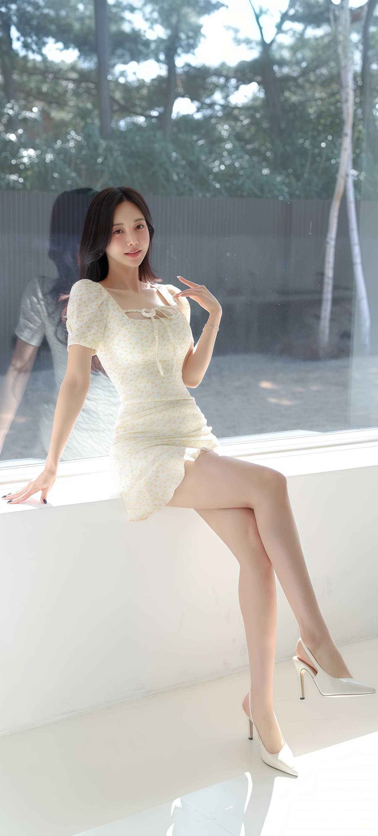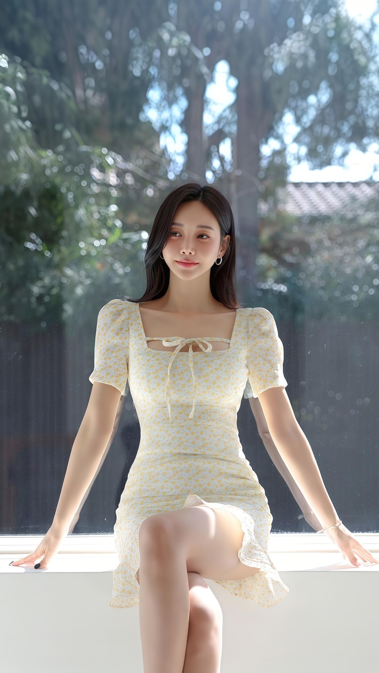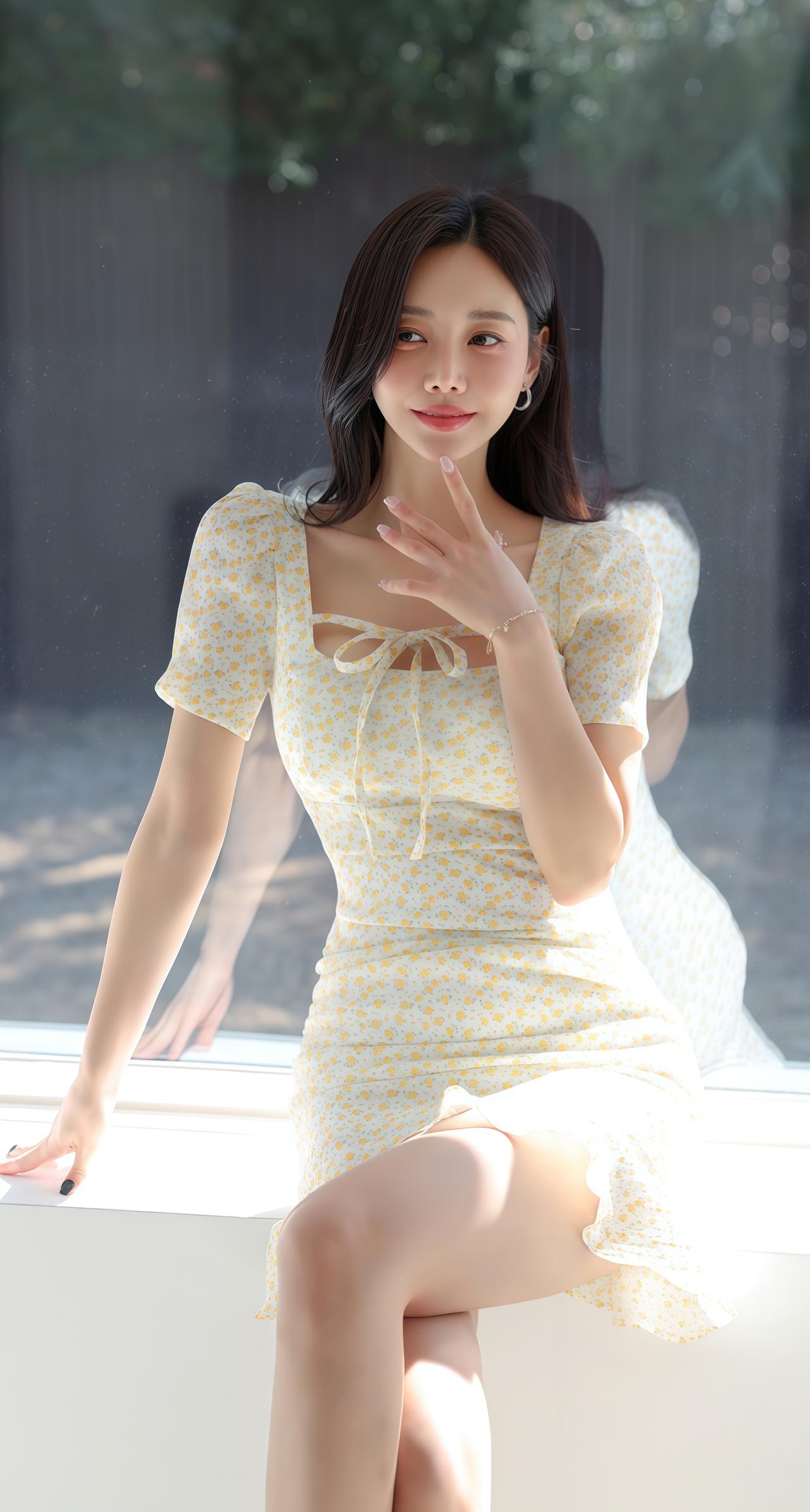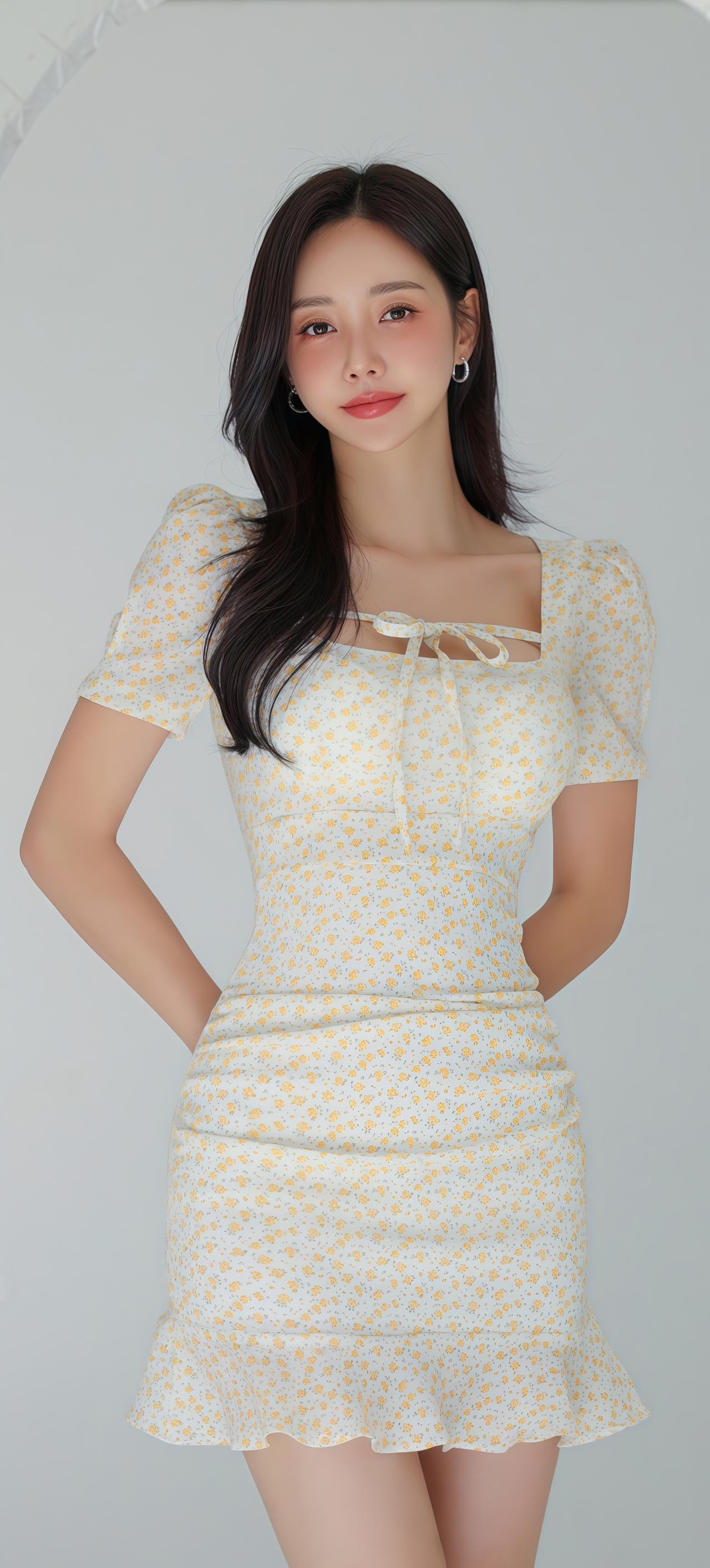 孙允珠绑带显瘦收腰碎花包臀裙图集。