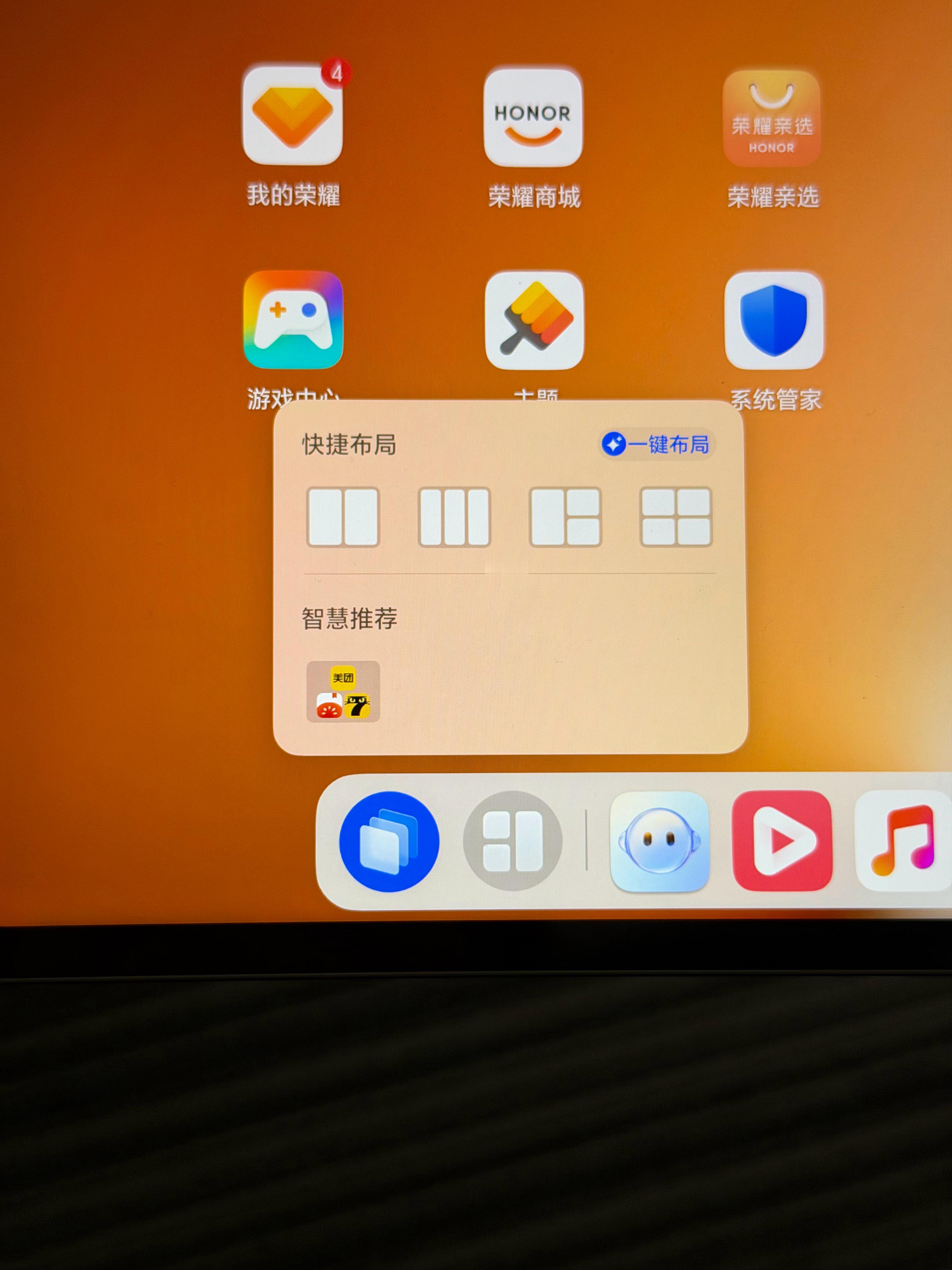 荣耀平板 这个 pc 模式蛮有意思的 有各种各样的快捷分屏 蛮好的