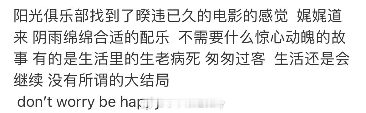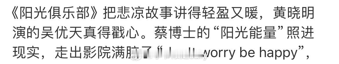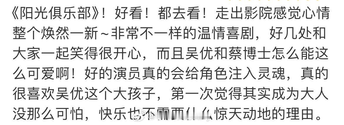 李银河说阳光俱乐部是稀缺的喜剧家人们这个阳光俱乐部好评如潮!!怪不得我到处都刷到在夸晓明哥演技的帖子🥹!好值得!!魏书钧导演再次用阳光俱乐部证明了自己的水平!这个时代很稀缺的喜剧,影评看的我都好想立刻看到!![拜托]