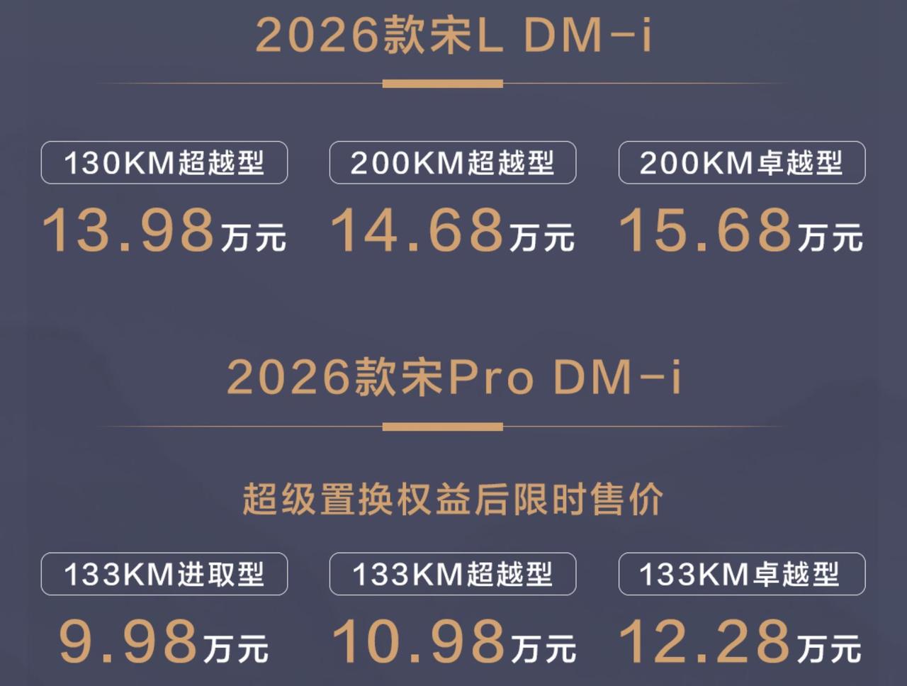 比亚迪这波操作,可以说是精准狙击——秦L、宋Pro、宋L同时上新,全系拉长续航、价格压得死死的。 宋Pro 133km 续航卖 9.98 万,宋L 130km 卖 13.98 万,秦L 128km 9.68 万。你会发现,比亚迪在混动市场上已经不是“求稳”,而是“求量”。 为什么这么说?因为明年购置税优惠政策卡得很死——只有WLTC纯电续航100km以上的车才能享受。而比亚迪现在几乎全系都达标,这波提前升级,明显是在为2025的销量铺路。 我上次试秦L的时候印象特别深,油门轻轻一点,发动机都懒得起床。亏电油耗也能压到5个多,关键底盘和隔音都比老款更像台家用轿车而不是“电混版出租”。这才是走量车该有的底子。 反观吉利,现在还在用8.5度的小电池,WLTC也就六七十公里,看着不差,实际上政策一收紧就吃亏。 明年要想混得好,不是拼智驾,也不是拼颜值,而是拼谁能跑到100公里以上。