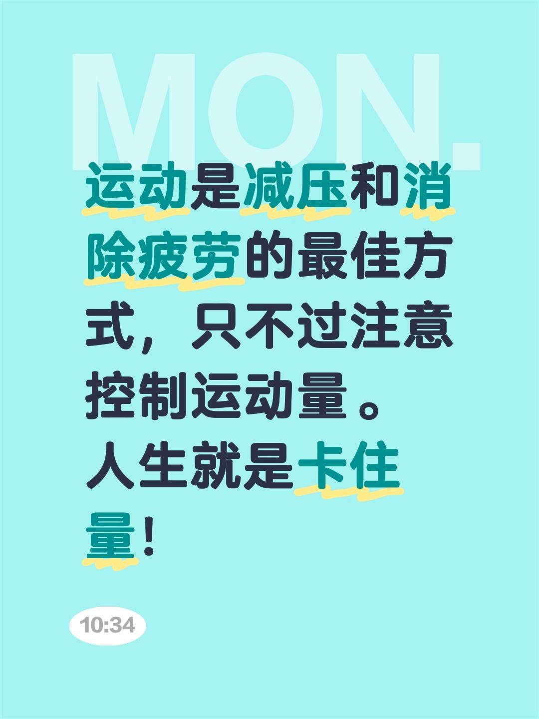 运动是减压和消除疲劳的最佳方式,只不过注意控制运动量。 人生就是卡住量!