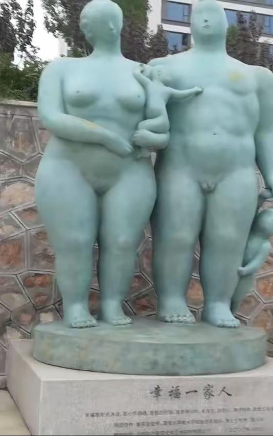 维纳斯很美,这个呢? 山西运城某公园内有一座“幸福一家人”的雕塑,让人不敢直视。 雕塑是夫妻俩带着两个孩子,袒胸露体,同等身高,肥硕的五短身材,如果没有性别特征,根本分不清男女。 负责安装的公司说,这是清华美院设计的,认为雕塑“太暴露”是思想太保守。 说到艺术,我们会想到蒙娜丽莎,大卫雕像,而这个不但不美,反而很丑。那么多艺术作品,干嘛要呗这个有争议的丑陋的艺术作品?这是公共场合,不是所有民众都欣赏得来这种艺术。 中国人的审美观是内在的含蓄的,不是赤裸裸的身体展示。中国和西方的文化历史底蕴不同,所以才会出现巨大的视观反差。