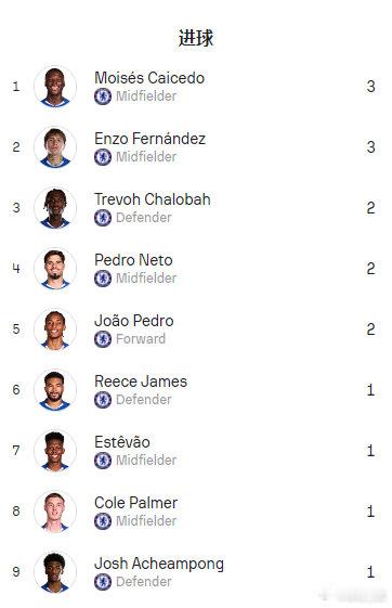 【多点开花】加纳乔收获在切尔西的英超处子球,蓝军本赛季英超已经有10名球员取得进球,与阿森纳并列赛事最多,其中凯塞多和恩佐两人各打入3球。
