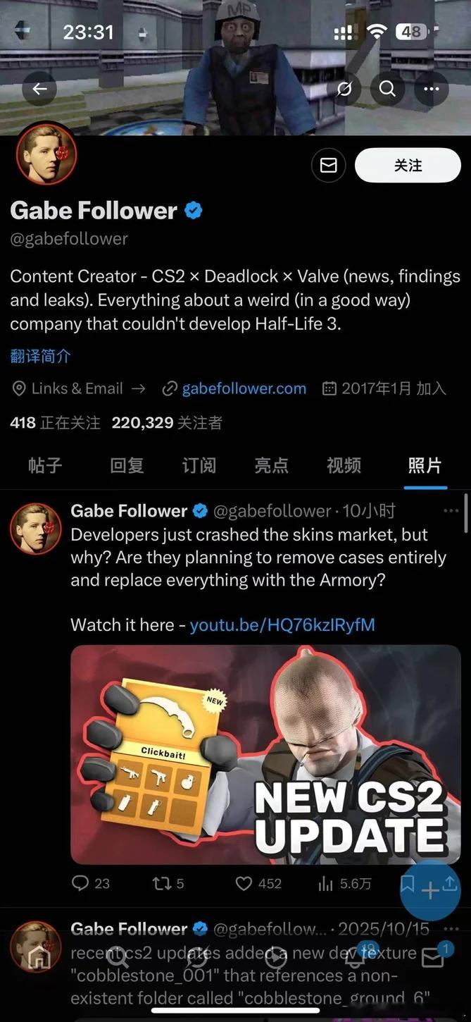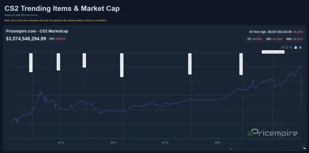 根据Pricempire的数据,CS2皮肤总价值在短短24小时内从约59亿美元暴
