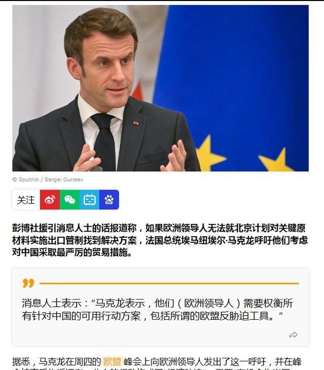 彭博社援引消息人士的话报道称,如果欧盟领导人无法就中国关键原材料出口管制措施找到解决方案,法国总统马克龙呼吁,他们需要考虑动用欧盟的“反胁迫工具”。该消息人士表示:“马克龙表示,他们(指欧洲领导人)需要权衡所有针对中国的可用行动方案,包括所谓的欧盟反胁迫工具。” 这事儿说起来挺扎眼的,就在2025年10月23日的欧盟峰会上,马克龙直接把话挑明了。中国那边最近放风要收紧稀土和关键矿产的出口管制,这可不是小打小闹。稀土这玩意儿,全球九成以上靠中国供应,欧洲的电动车电池、风力涡轮机、手机芯片,全都离不开它。一旦管制一紧,欧洲工厂的供应链就得卡壳,成本蹭蹭上涨。马克龙这番话,表面上看是给欧盟领导人们提了个醒,实际上也暴露了中欧贸易这几年越闹越僵的底牌。 中国从2023年起就开始对镓、锗、石墨这些战略矿产搞出口许可制度,本意是维护国家资源安全,顺带回应美国和欧盟的芯片限制。但到2025年,这管制又升级了,北京计划进一步控制稀土出口,包括磁铁和相关加工品。这直接戳中了欧洲的痛点。欧盟的“绿色转型”大计,全指望电动车和可再生能源,可这些行业对稀土依赖极大。德国大众、法国雷诺这些车企,已经在抱怨供应链不稳,意大利的半导体厂也开始囤货。欧盟委员会主席冯德莱恩在峰会后直言,这事儿得“考虑所有选项”,意思是别光嘴上说,得有实打实的备选方案。 马克龙的呼吁,点名了欧盟的反胁迫工具,也就是Anti-Coercion Instrument,简称ACI。这工具是2023年欧盟敲定的“核选项”,专治经济施压。简单说,它允许欧盟对第三方国家征收关税、限制公共采购、甚至冻结知识产权保护,层层递进,先谈判,后动手。听起来狠,但到目前为止,从没真用过。为什么?因为这玩意儿一启动,中欧贸易战就得全面开打。欧洲对华出口汽车、奢侈品、机械设备,占总出口的八九成,进口则有大量消费品和电子元件。真打起来,欧洲消费者先遭殃,物价飞涨不说,失业率还得跟着水涨船高。 峰会本身也没闲着。27个成员国领导人齐聚布鲁塞尔,议题从乌克兰援助转到贸易摩擦。德国总理弗里德里希·梅尔茨事后表态,说大家聊了反胁迫工具,但没下定决心。意大利总理乔治娅·梅洛尼更直白,称中国这步棋违反国际贸易规则,得硬扛。西班牙和荷兰这些国家则低调点,担心报复波及本国出口。最终,峰会公报里加了句“欧盟委员会要有效利用所有经济工具,威慑外部威胁”,这算给马克龙的面子,但也留了回旋余地。冯德莱恩强调,优先还是对话,别急着撕破脸。 转眼到10月24日,后续动作就来了。本来欧盟贸易委员马罗什·谢夫乔维奇和中国商务部部长王文涛定好视频会谈,结果欧盟单方面取消了,转而推专家级磋商。为什么?据欧新闻网报道,是因为北京的稀土威胁让布鲁塞尔火气上头,但又不想把事儿闹大。专家级谈,门槛低,焦点搁在许可流程简化上,比如欧洲企业怎么更快拿到出口配额。德国和法国已经递了需求清单,列了芯片厂和电池厂的具体吨位数据。美国那边也掺和进来,G7框架下分享了稀土调查报告,帮欧盟盘点澳大利亚和加拿大的替代矿源。 这背后,中欧关系这几年走得磕磕绊绊。欧盟从2024年起就对中国电动车加征关税,最高达45%,法国带头鼓劲,说这是反补贴。结果呢?中国车企比亚迪、奇瑞在欧洲销量不降反升,价格战打得欧洲本土品牌直叫苦。马克龙上台后,一直推“欧洲战略自主”,意思是少靠美国,多自力更生。但在对华政策上,他摇摆得厉害。一边签大单买中国电池,一边又喊经济胁迫。说白了,法国汽车业伤不起,巴黎郊区的工厂要是停线,失业潮就得来。 从大格局看,这波摩擦是中美欧三角博弈的缩影。美国特朗普上台后,关税壁垒更高,中国转而用资源牌卡欧洲脖子。欧盟夹在中间,想两头不得罪,可产业升级离不开中国供应链。马克龙的表态,某种程度上是法国在欧盟内部刷存在感。
