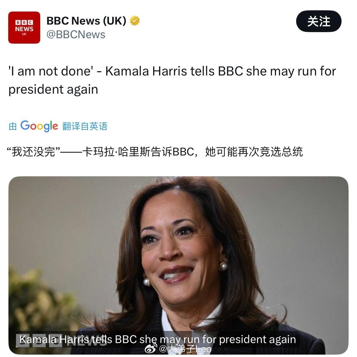 哈里斯BBC最新专访“我还没完,可能会再次竞选美国总统”